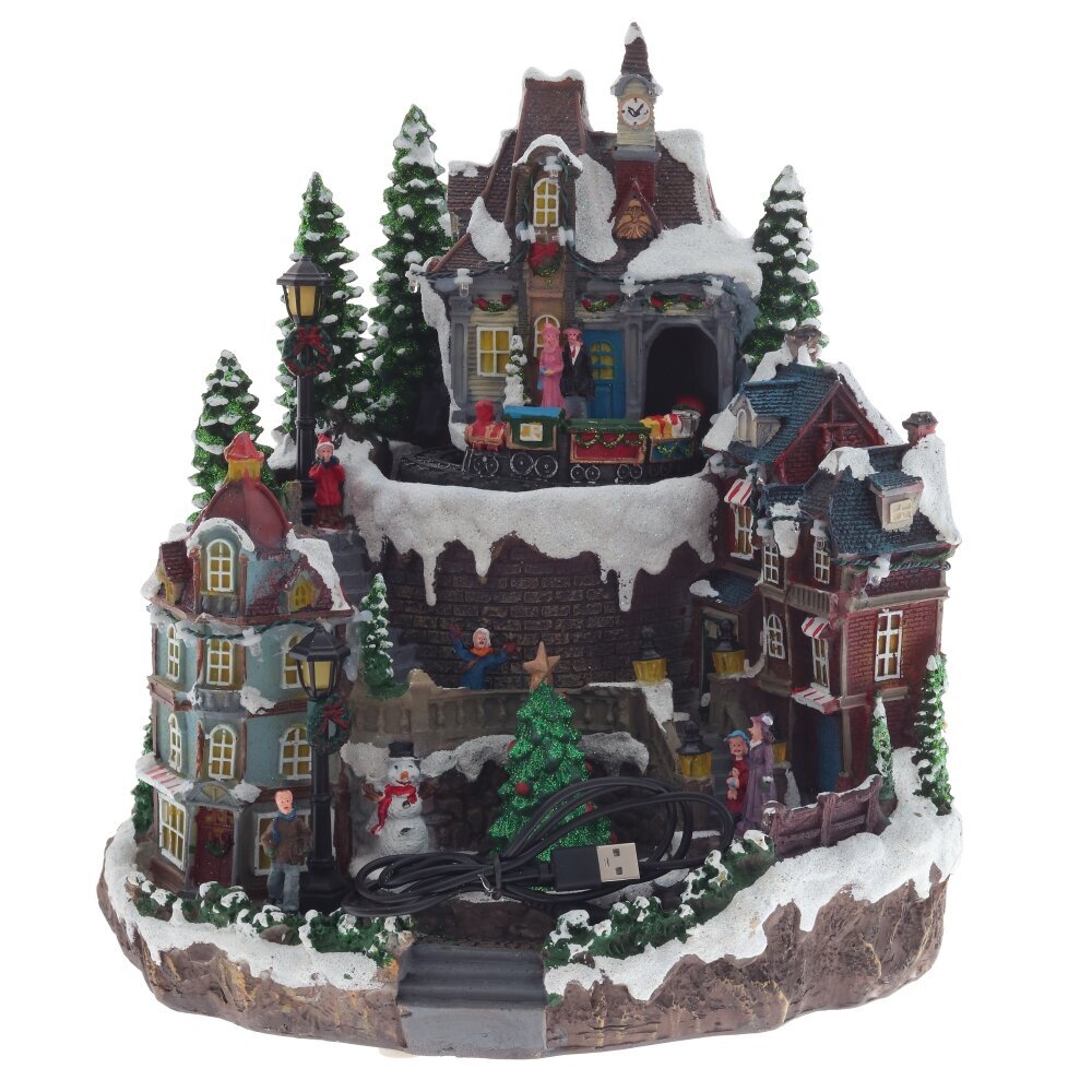 Новогодняя музыкальная композиция с подсветкой станет прекрасной декорацией к новогоднему убранству. Миниатюра демонстрирует сценку из жизни маленького городка, жители которого готовятся к встрече зимних праздников. Сияющие огоньки, движущиеся элементы и веселая музыка помогут композиции стать самой заметной частью праздничного декора. Работает от трех батареек АА (не прилагаются). Шнур питания Кабель USB 100 см входит в комплект.