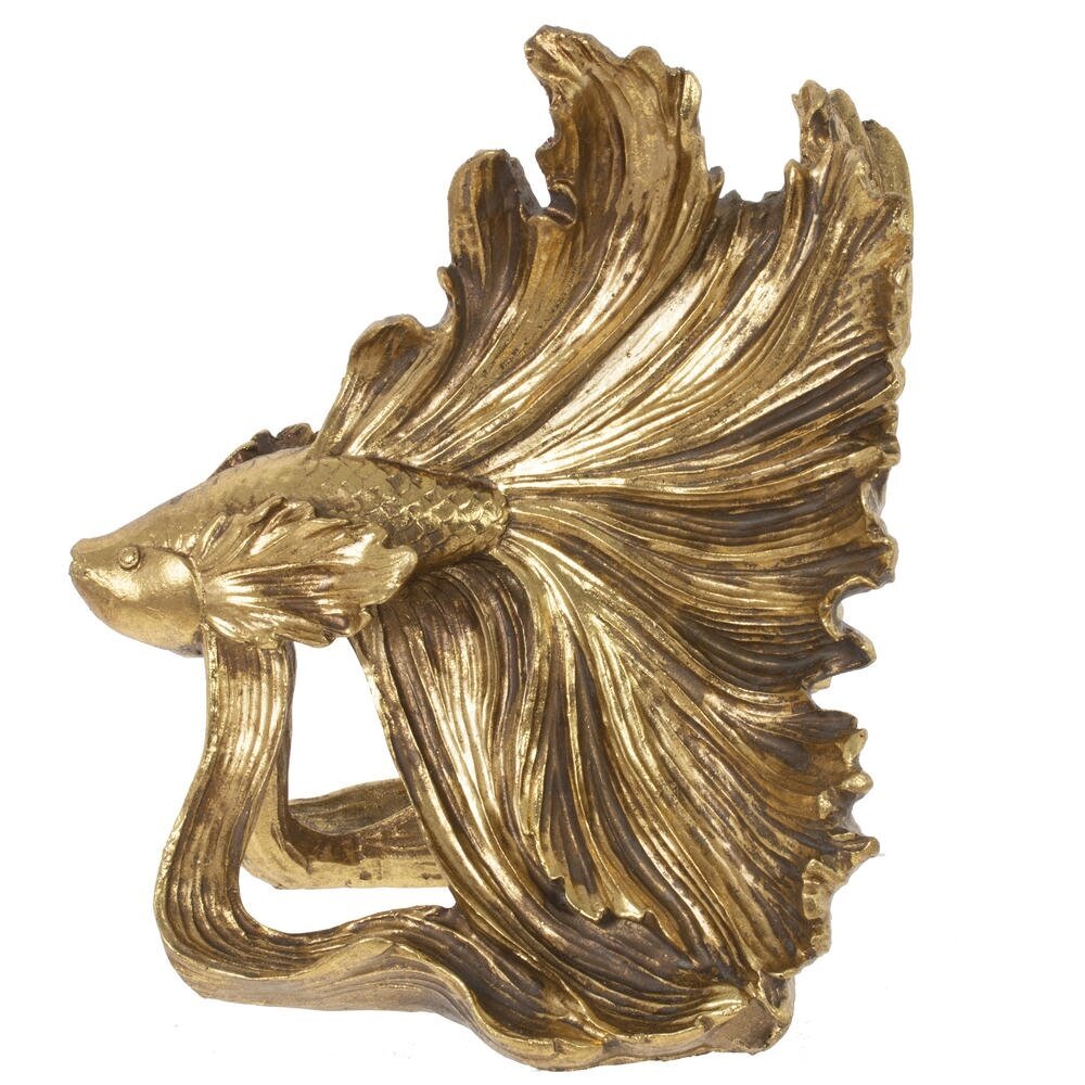 Декоративная фигурка «Рыба» станет эффектным акцентом в любом интерьере. Изящно проработанные плавники создают ощущение движения, а выразительная фактура чешуи подчёркивает благородный золотистый оттенок изделия. Фигурка выполнена из прочных полимерных материалов, устойчивых к выцветанию и механическим повреждениям, поэтому долго сохраняет первоначальный вид. Подойдёт для оформления гостиной, спальни, кабинета или зоны приёма гостей, гармонично сочетается с классическим, современным и эклектичным стилями. Идеальный вариант подарка для ценителей оригинального декора и морской тематики.