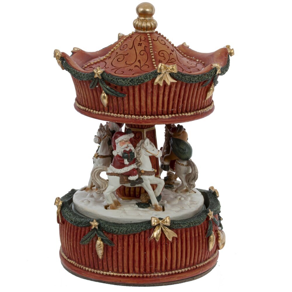 Фигурка оснащена механическим заводом, который активируется простым поворотом от руки. Как только вы заведёте карусель, начинает звучать знаменитая мелодия "We Wish You a Merry Christmas", наполняя пространство праздничными нотами.