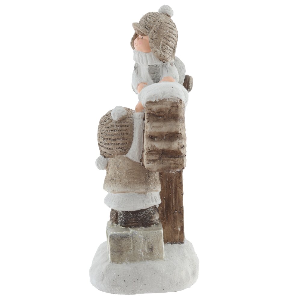 Декоративная фигурка "Дети зимой" — очаровательная зимняя композиция, изображающая играющих на снегу детей. Фигурка выполнена с тонкой проработкой деталей: радостные лица, зимняя одежда, снежные элементы — всё передаёт атмосферу весёлой зимней прогулки. Дополнительную магию добавляет встроенная подсветка, работающая от батареек, которая мягко освещает композицию, создавая тёплое и уютное свечение в тёмное время суток. Это украшение станет прекрасным дополнением к новогоднему интерьеру, подойдёт для размещения на полке, каминной полке или праздничном столе. Благодаря прочным материалам и качественной сборке, фигурка будет радовать вас не один сезон.