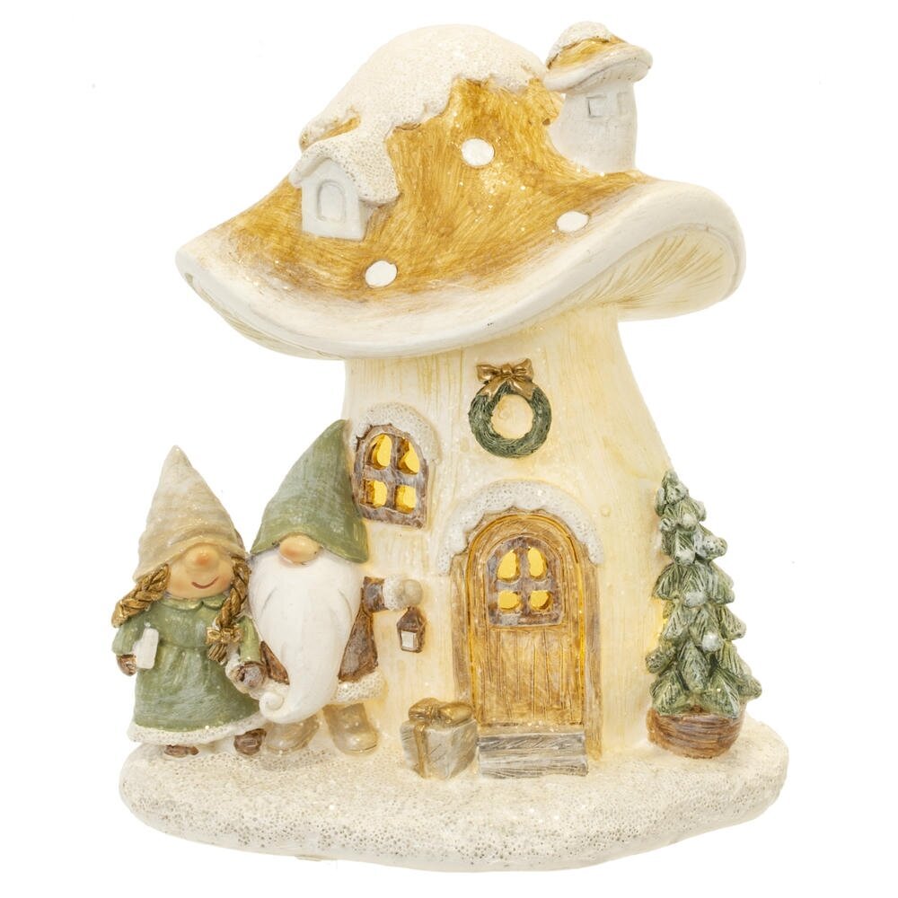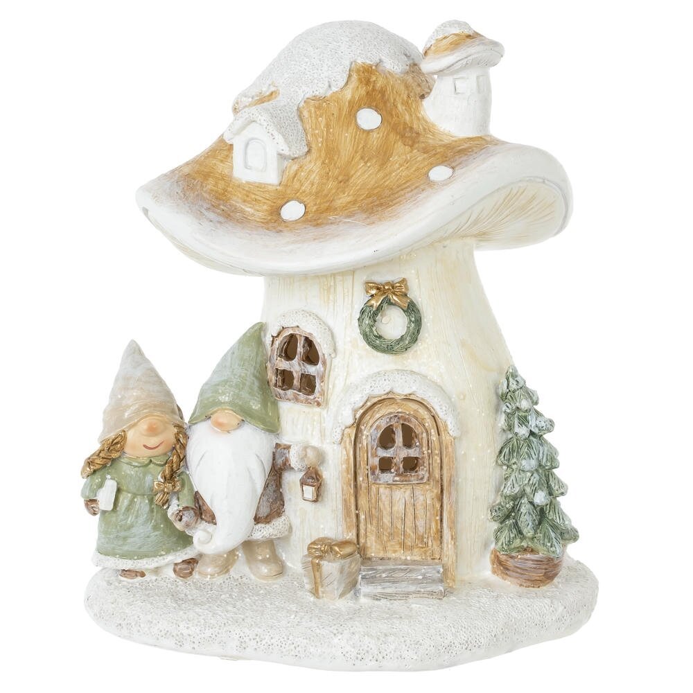 Декоративная фигурка с подсветкой "Домик и гномы" вдохновляет своим волшебным дизайном и уникальной атмосферой. Компактные размеры фигурки делают ее удобной для размещения в любом уголке вашего дома. Изготовленная из полистоуна, она выделяется высокой детализацией, что позволяет передать чарующий мир сказки и волшебства. Сюжет фигурки - это очаровательный домик-гриб с подсвечивающимися окошками, идеально подходящий для зимних вечеров. Рядом с домиком располагаются два симпатичных гномика, словно только что вышедшие из сказки. Подсветка активируется с помощью двух батареек типа LR44, которые входят в комплект. "Домик и гномы" отлично впишется в новогодний декор, станет прекрасным акцентом на рождественском столе, под ёлкой или на полке.