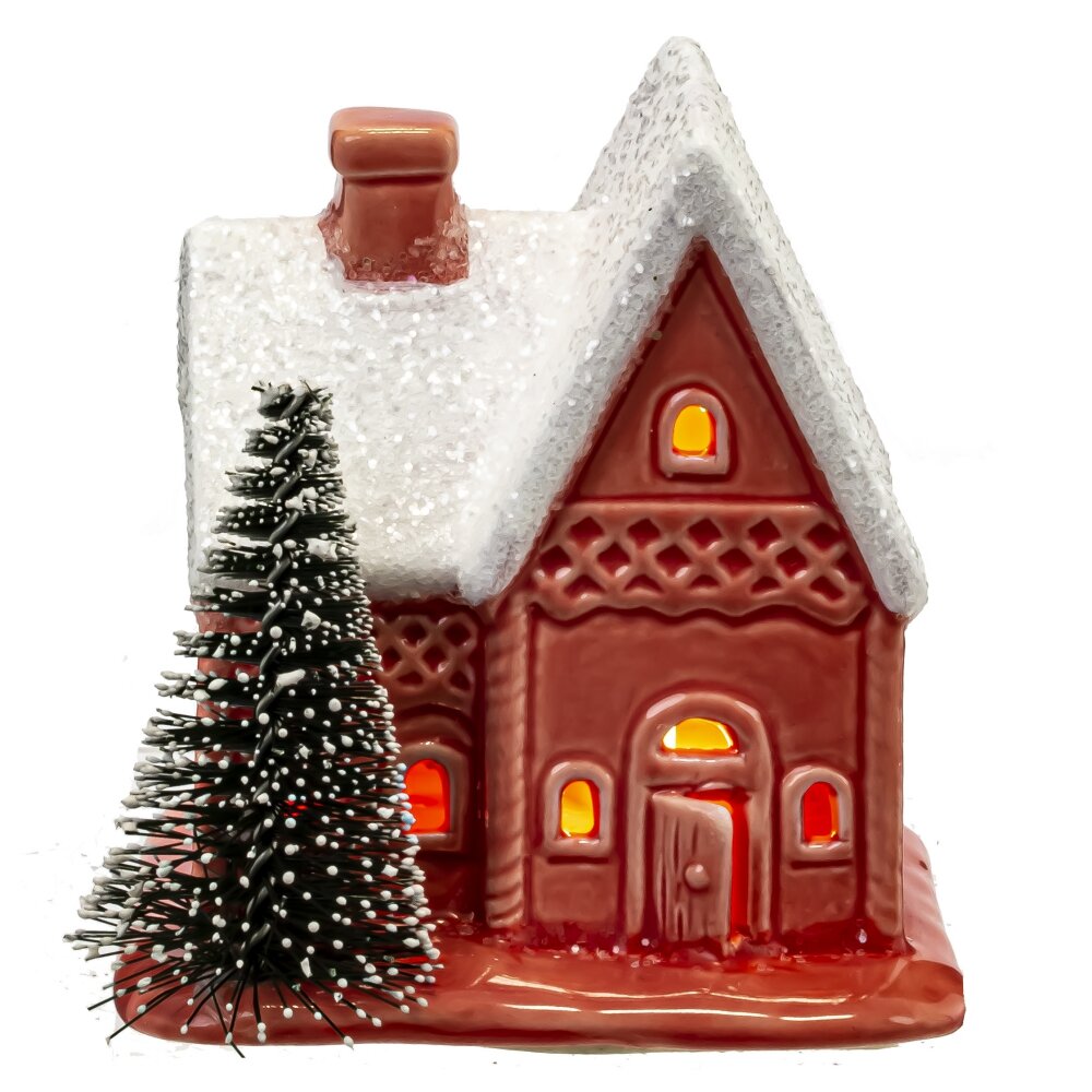Декоративная фигурка с подсветкой "Домик" — это стильное новогоднее украшение в виде домика в скандинавском стиле, выполненное из фарфора. Домик доступен в трех цветах: оранжевом, сером и зеленом. При переключении рычажка на дне фигурки в окнах загорается свет, создавая уютную атмосферу. Подсветка работает от двух батареек типа LR44, которые входят в комплект. Рядом с дверью расположены две симпатичные елочки, дополняющие общую праздничную композицию и придающие интерьеру очарование новогодней сказки.