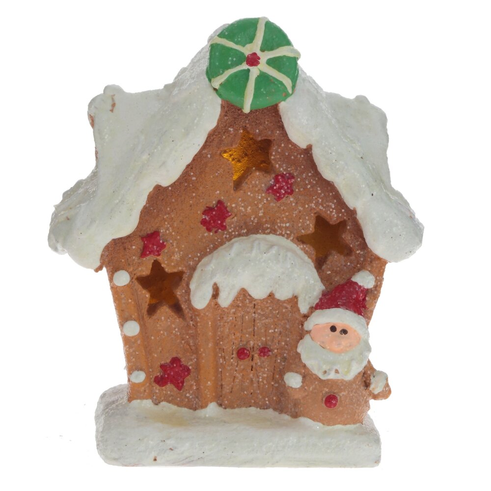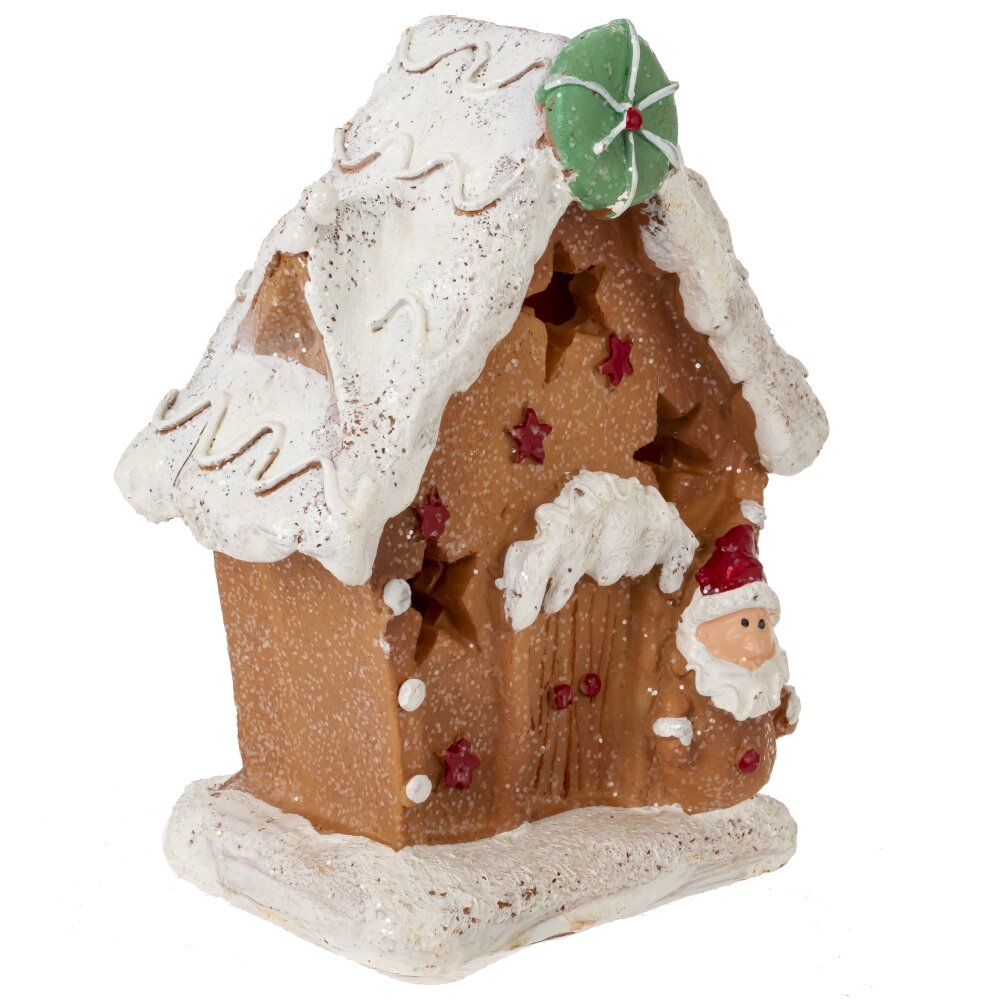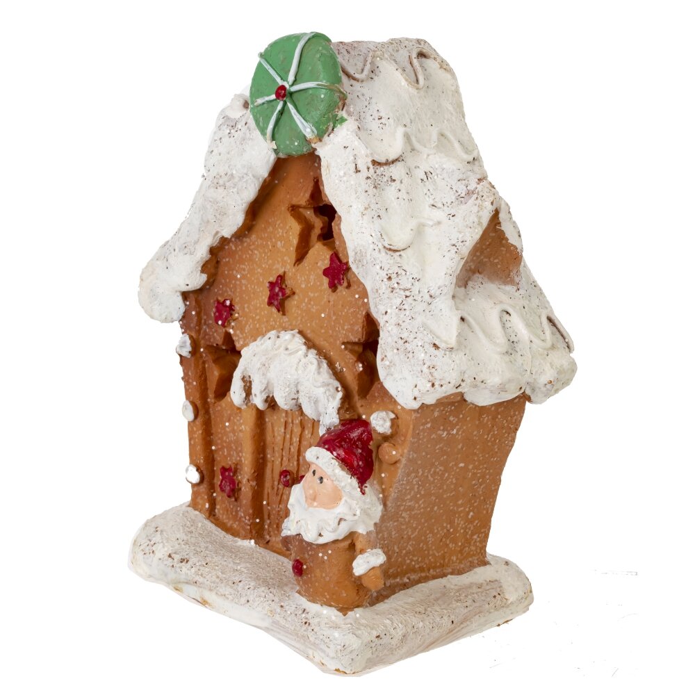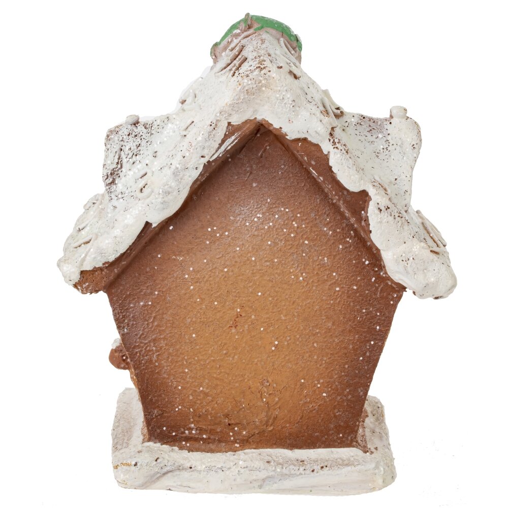 Эта очаровательная миниатюра станет прекрасным дополнением к вашему праздничному декору. Пряничный домик украшен белоснежной глазурью и декорирован яркими элементами и искрящимся шиммером, что создает атмосферу волшебного Рождества. Встроенная подсветка, спрятанная в домике, создает мягкое и теплое свечение, которое делает его еще более уютным и привлекательным. В темное время суток, окна домика будут ярко гореть, напоминая о волшебстве праздника. Разместите фигурку на каминной полке, на праздничном столе или на полке с другими новогодними украшениями - она будет гармонично вписываться в любой интерьер и создавать атмосферу праздника.
