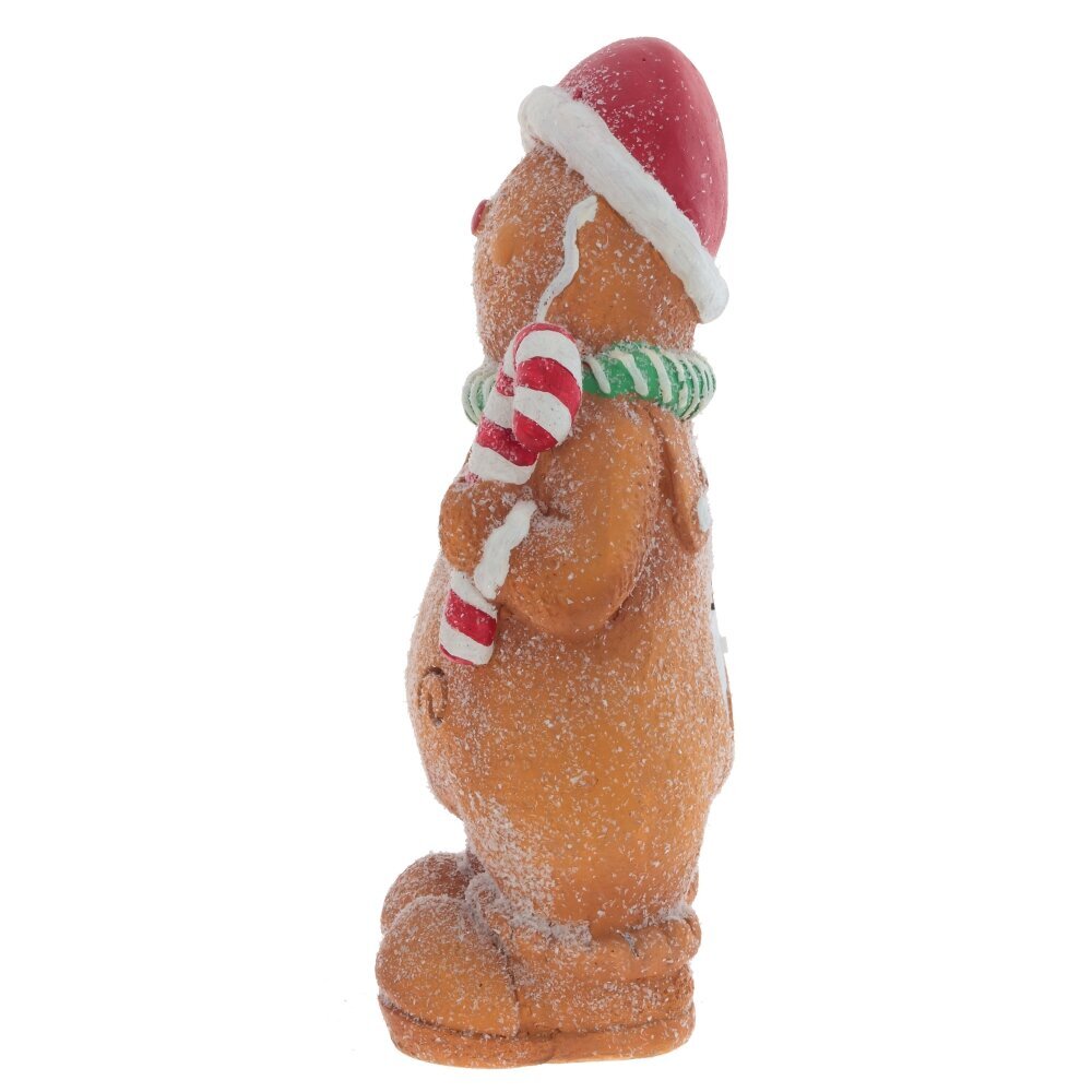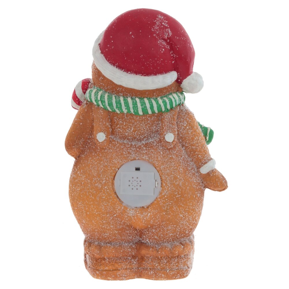 Фигурка с подсветкой "Пряник" – это очаровательный и яркий пряничный человечек, выполненный из прочного полимерного материала. Мальчик-пряник с зеленым шарфиком, в красном новогоднем колпаке и с леденцом в руке. Его счастливая улыбка и искрящийся глиттер, словно сахарная посыпка, создают атмосферу праздника. Эта фигурка прекрасно украсит стол в рождественские дни и станет замечательным подарком для родных и близких, приносящим радость и тепло в дом.На дне фигурки рычажок активирует подсветку, которая излучает мягкое теплое свечение через маленькие отверстия. Подсветка работает от трех батареек типа ААА (не прилагаются)