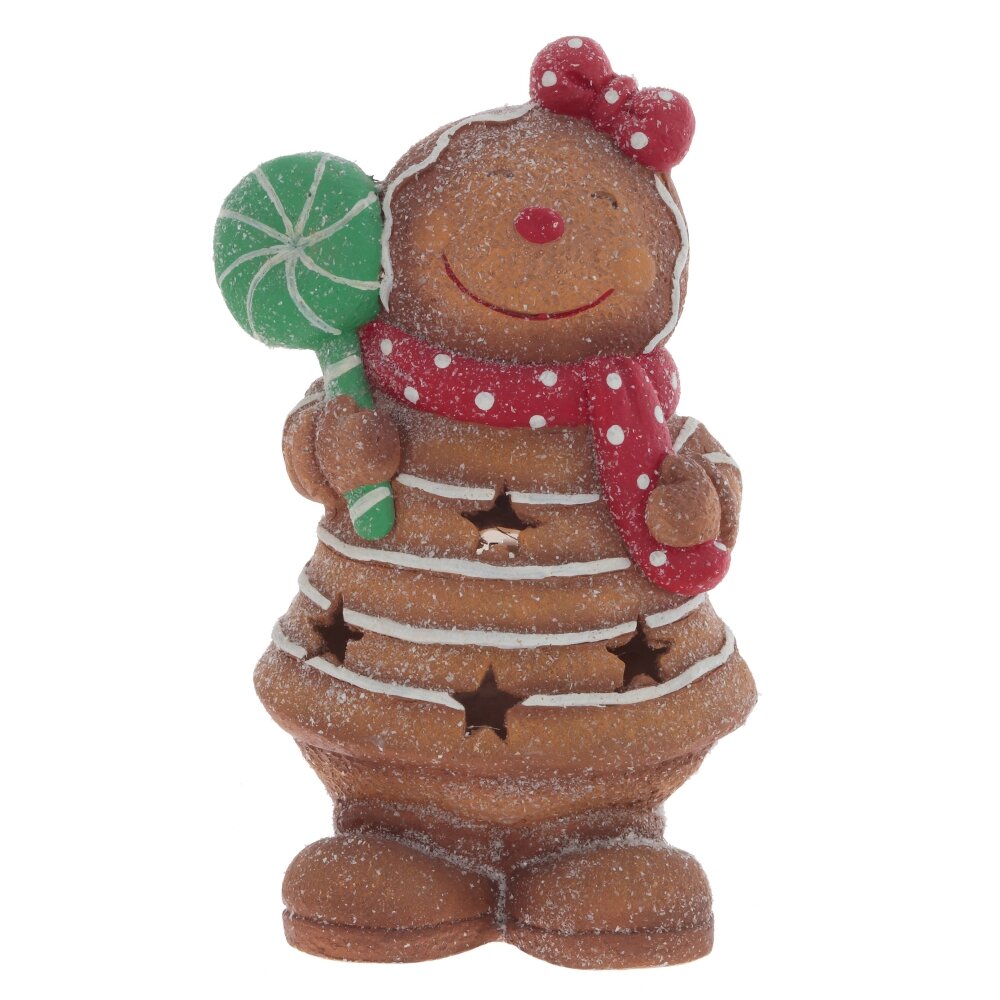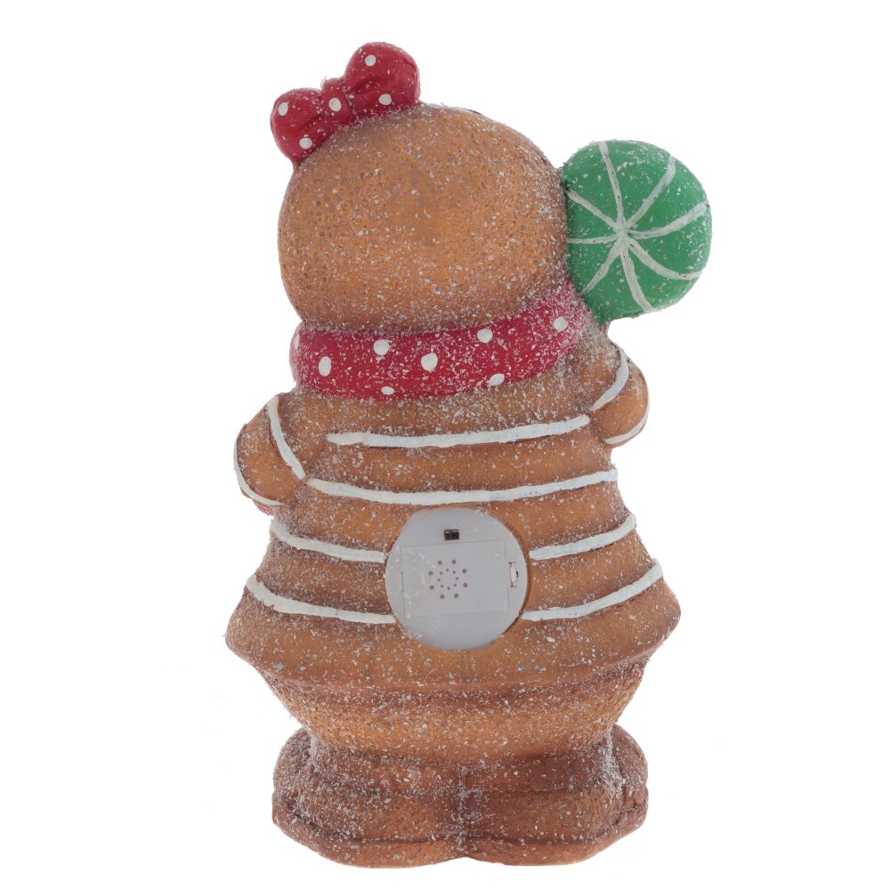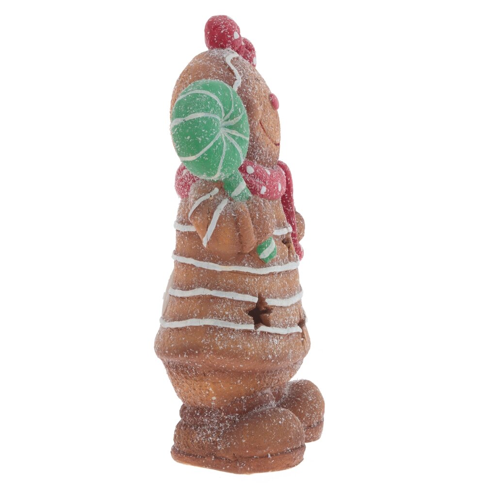 Фигурка с подсветкой "Пряник" – это очаровательный и яркий пряничный человечек, выполненный из прочного полимерного материала. Девочка-пряник с красным шарфиком и с леденцом в руке. Её счастливая улыбка и искрящийся глиттер, словно сахарная посыпка, создают атмосферу праздника. Эта фигурка прекрасно украсит стол в рождественские дни и станет замечательным подарком для родных и близких, приносящим радость и тепло в дом.На дне фигурки рычажок активирует подсветку, которая излучает мягкое теплое свечение через маленькие отверстия. Подсветка работает от трех батареек типа ААА (не прилагаются)
