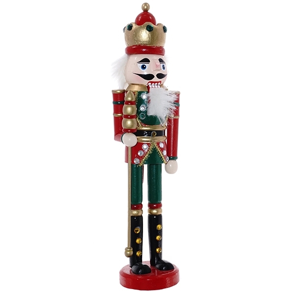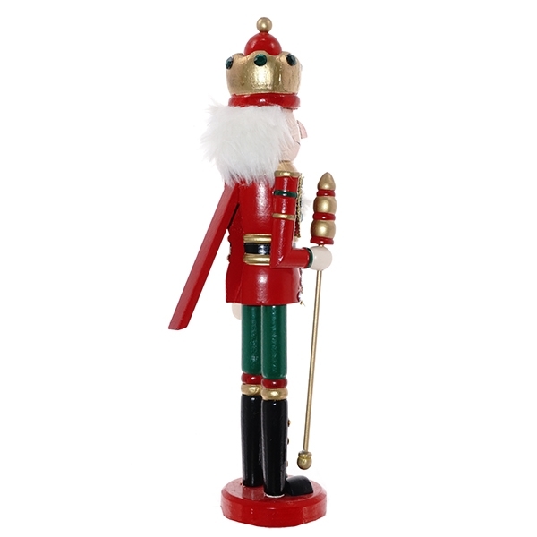 Бравый Щелкунчик в ярком мундире станет нарядным новогодним караулом, приветствующим наступление долгожданного праздника. Фигурка изготовлена из дерева.