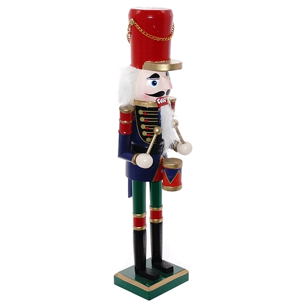Бравый Щелкунчик в ярком мундире станет нарядным новогодним караулом, приветствующим наступление долгожданного праздника. Фигурка изготовлена из дерева.