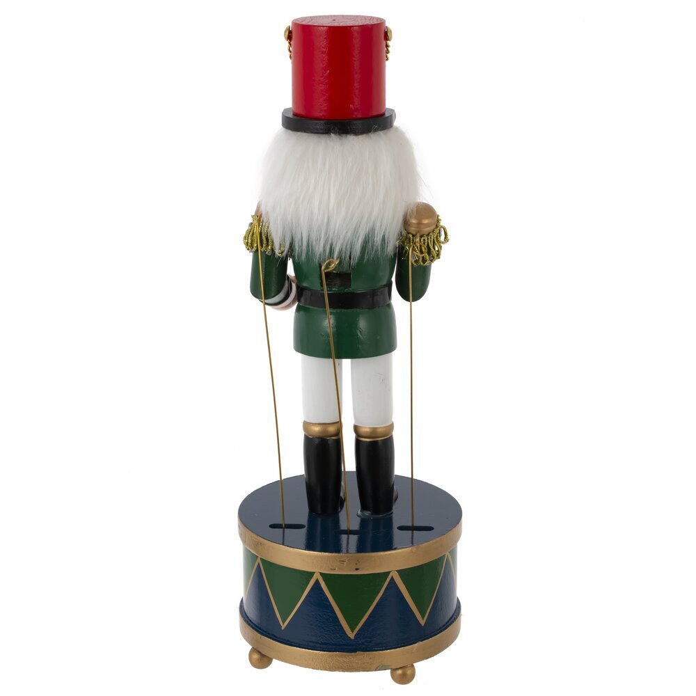 Декоративный деревянный Щелкунчик с музыкой на заводном ключе и функцией движения. Стоит на деревянной подставке в форме барабана. При повороте ключа Щелкунчик начинает двигать руками и открывать-закрывать рот под мелодию из одноименного балета. Этот очаровательный щелкунчик станет отличным украшением для вашего дома и принесет в него праздничное настроение и волшебную атмосферу сказки.
