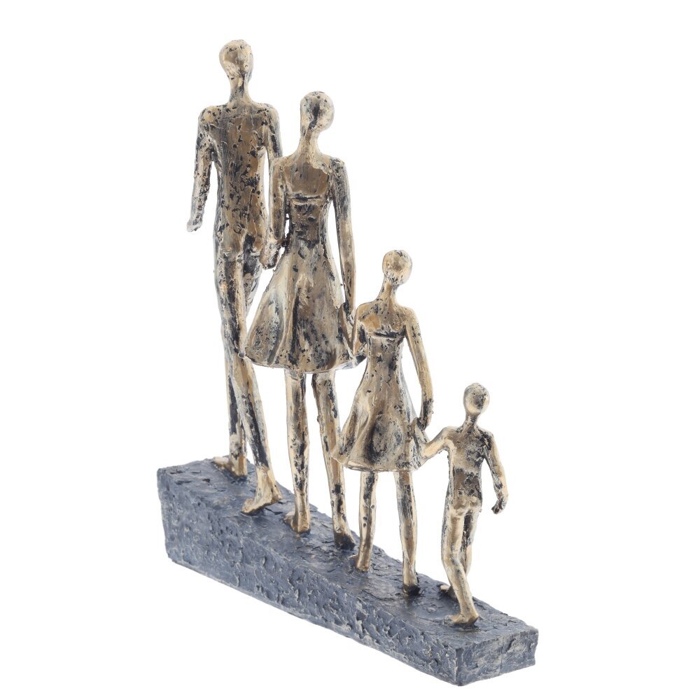 На изображении представлена декоративная фигурка под названием "Семья", выполненная из полимерных материалов. Композиция состоит из четырех абстрактных фигур — двух взрослых и двух детей, которые держатся за руки, символизируя единство, поддержку и гармонию внутри семьи. Лица у фигур условные, что придает работе универсальность — такая скульптура может олицетворять любую семью, не привязываясь к конкретным людям. Скульптура выполнена с налётом рустикального стиля, с грубой текстурой материала, что придает изделию оригинальный и современный вид. Фигурка станет отличным подарком или украшением для дома, напоминая о семейных ценностях, тепле и взаимопонимании между близкими людьми. Такой аксессуар подчеркнёт уют и индивидуальность интерьера, а также внесёт в атмосферу дома нотки теплоты и душевности.