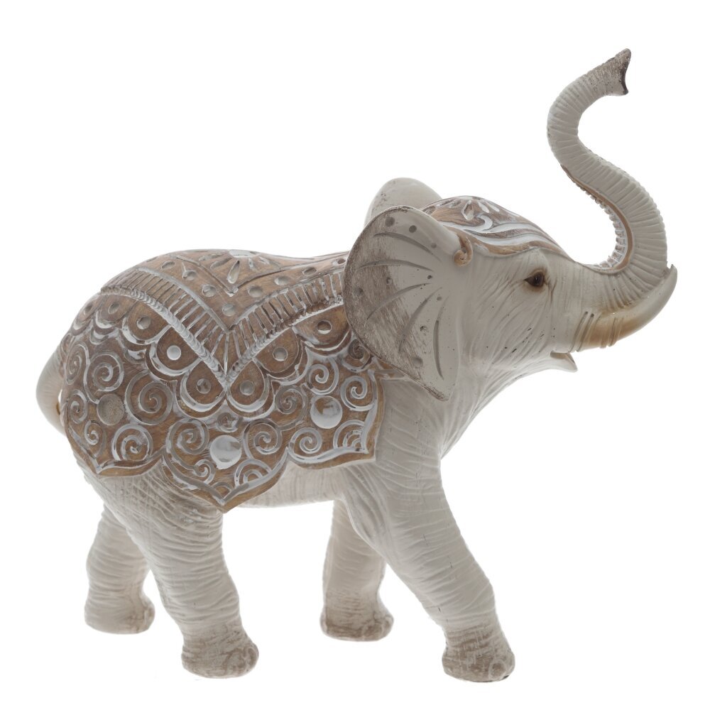 Декоративная фигурка "Слон" изготовлена из прочных полимерных материалов и привлекает внимание своим изысканным дизайном. Выполненная в светлых тонах с аккуратными узорами, она символизирует удачу, мудрость и благополучие. Поднятый вверх хобот считается знаком счастья и процветания, что делает изделие отличным подарком или украшением интерьера. Благодаря детальной проработке и изящным декоративным элементам, фигурка гармонично впишется в классический или восточный стиль оформления. Слон станет прекрасным дополнением к вашей коллекции статуэток или элегантным акцентом в интерьере.
