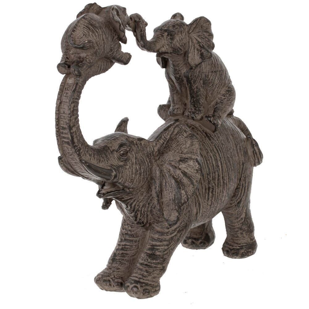 Декоративная фигурка "Слоны" — это изделие, которое станет прекрасным акцентом в вашем интерьере. Изготовленная из полимерных материалов, она сочетает в себе прочность и оригинальный дизайн. Фигурка изображает большого слона, на спине и хоботе которого удобно разместились два меньших слоненка. Эта композиция символизирует семью и заботу, что делает её не только красивым, но и значимым элементом декора. Слоны олицетворяют мудрость и силу, а также являются символом благополучия и удачи в многих культурах. Тщательно проработанные детали, такие как текстура кожи, придают фигурке реалистичность и живость. Благодаря нейтральной цветовой палитре, фигурка легко впишется в любой интерьер . Более того, её можно использовать как подарок для друзей или близких, она станет отличным украшением как для дома, так и для офиса.