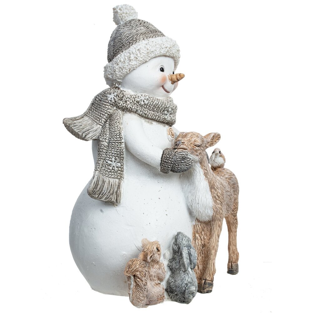 Милая фигурка Снеговика прекрасно впишется в любой интерьер. Украшение выполнено из полимерных материалов и прослужит вам ни один год. Каждое Рождество милый снеговик с олененком будет возвращаться, чтобы снова пригласить вас в новогоднюю сказку.