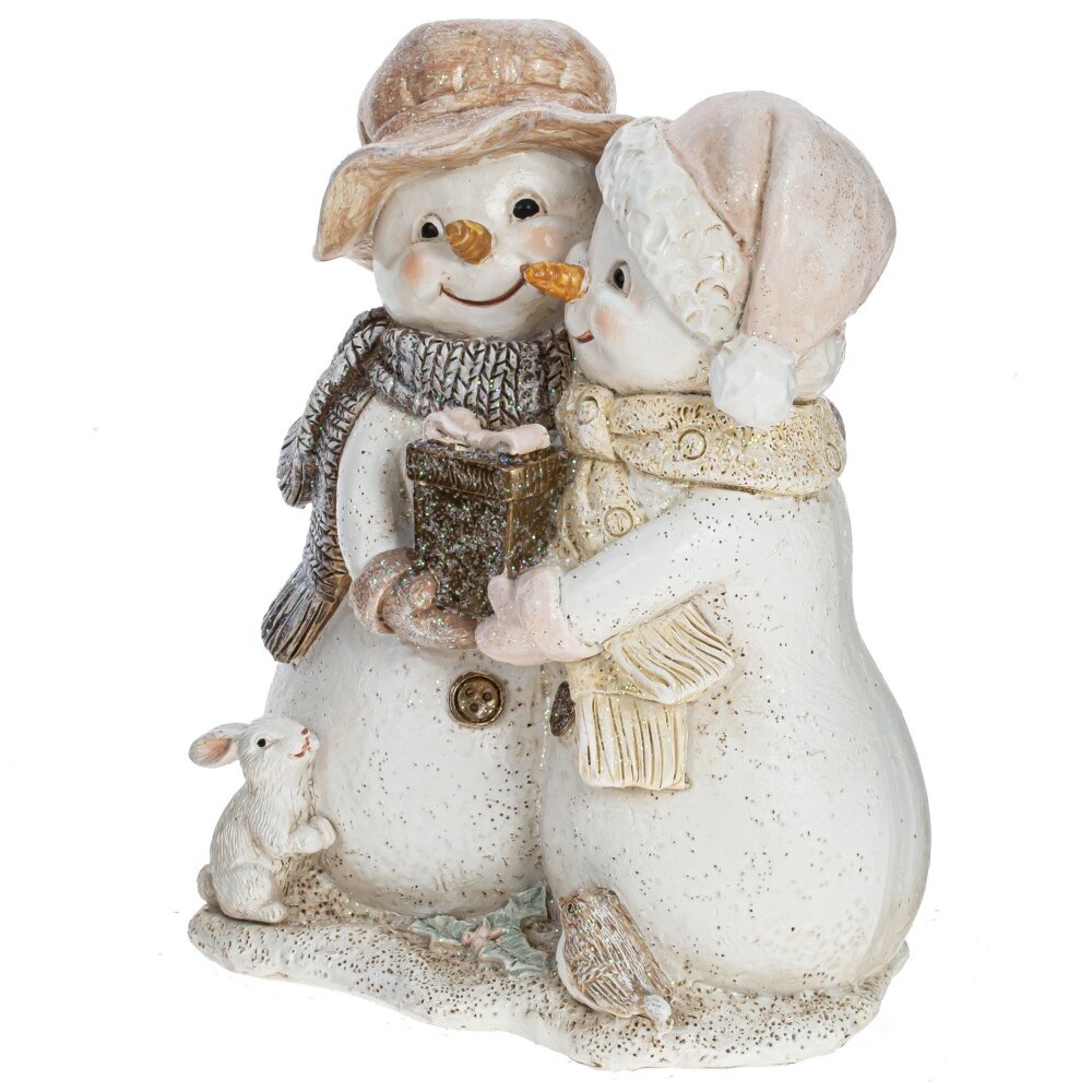 Милая новогодняя фигурка Снеговиков - это настоящая находка для тех, кто любит создавать уютную атмосферу вокруг себя и украшать дом на Новый год. Фигурка изображает двух снеговиков, которые обнимают друг друга и держат подарок. Фигурка является не только элементом декора, но и приятной ассоциацией с радостным настроением праздника.
