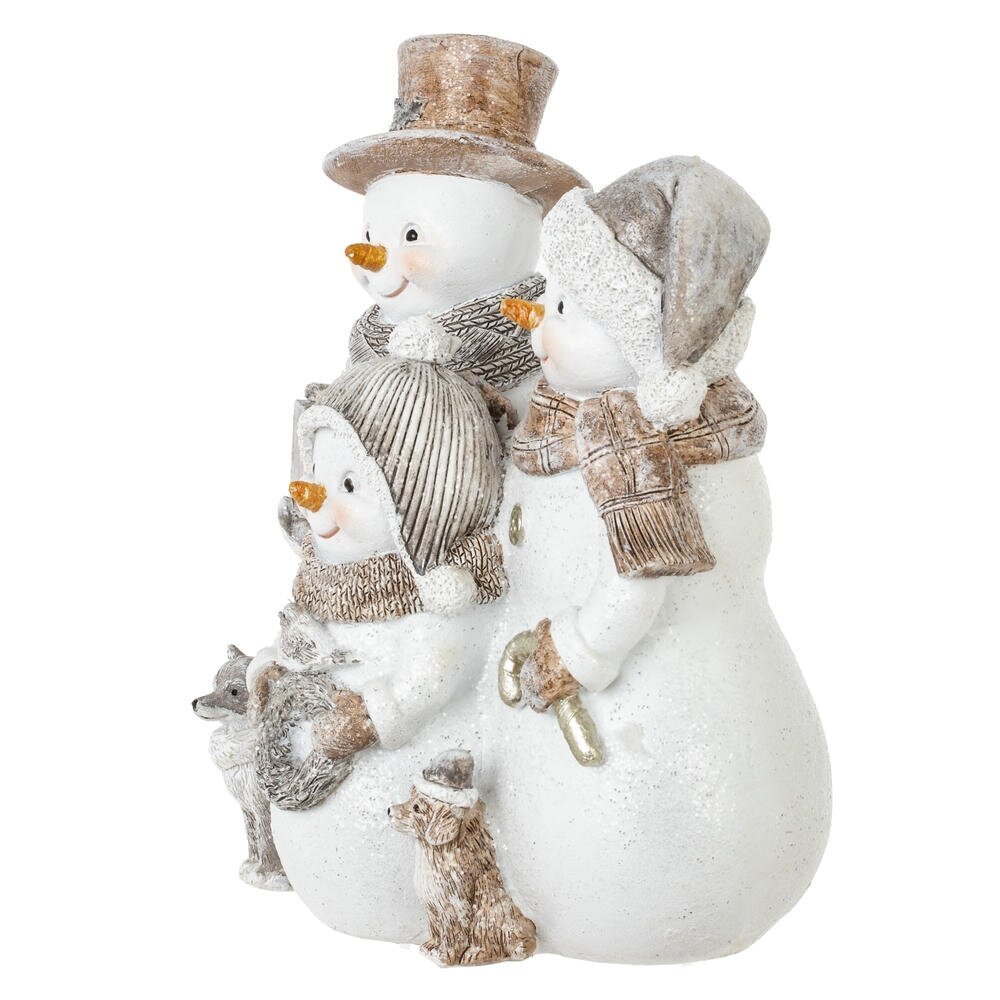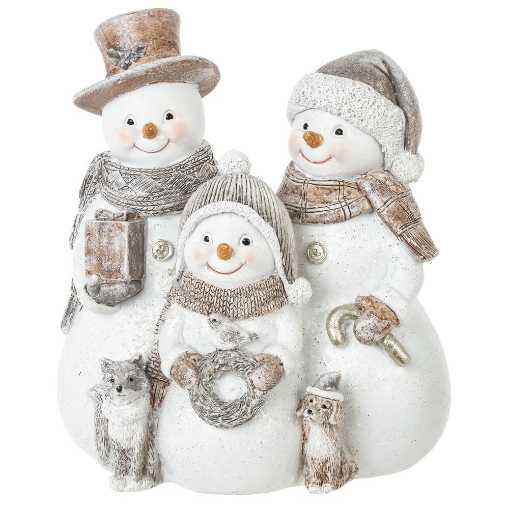 Встречайте Новый год с очаровательной композицией семьи снеговиков, которая станет стильным украшением вашего праздничного интерьера! Эта композиция выполнена в нежных пастельных тонах, что делает ее особенно уютной и гармоничной. Снежная семья состоит из трех снеговиков: папы, мамы и ребенка. Каждый из них одет в милые новогодние аксессуары: шапки, шарфы и варежки. Композиция выполнена из высококачественных материалов, что делает ее прочной и долговечной. Она гармонично впишется в любой интерьер и создаст атмосферу новогоднего волшебства и семейного уюта. Поставьте ее на каминную полку, на праздничный стол или на полку с другими новогодними украшениями. Композиция семьи снеговиков станет отличным украшением для новогоднего декора и подарит вам незабываемые впечатления от праздника!