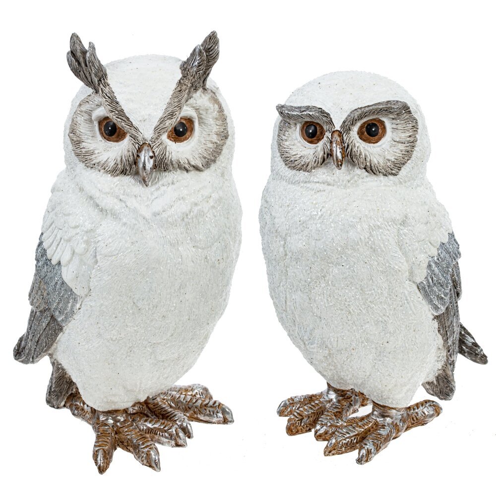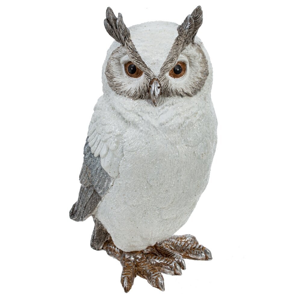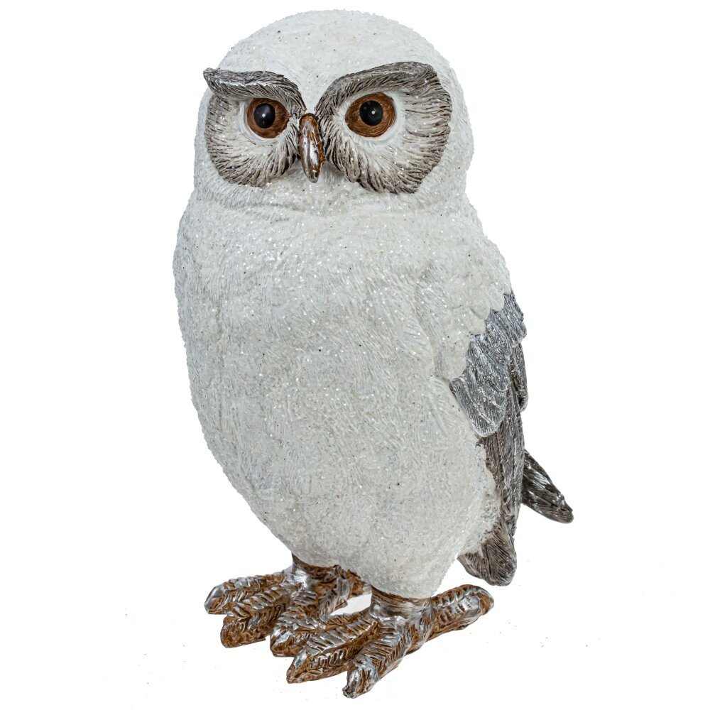 Декоративная фигурка совы выполнена в изысканном сочетании белого и серебряного.Эта очаровательная сова с белоснежным оперением и серебряным декором будет прекрасным украшением любого интерьера.Деликатное украшение шиммером, придает фигурке мягкий блеск. Ее мудрые глаза и изысканный декор придают ей особый шарм и подчеркивают ее изящный стиль. Фигурка совы может стать прекрасным подарком для тех, кто ценит красоту и утонченность. Она идеально подходит для украшения каминной полки, стола, полки с книгами или любого другого места в вашем доме, где она будет радовать глаз и создавать атмосферу уюта.