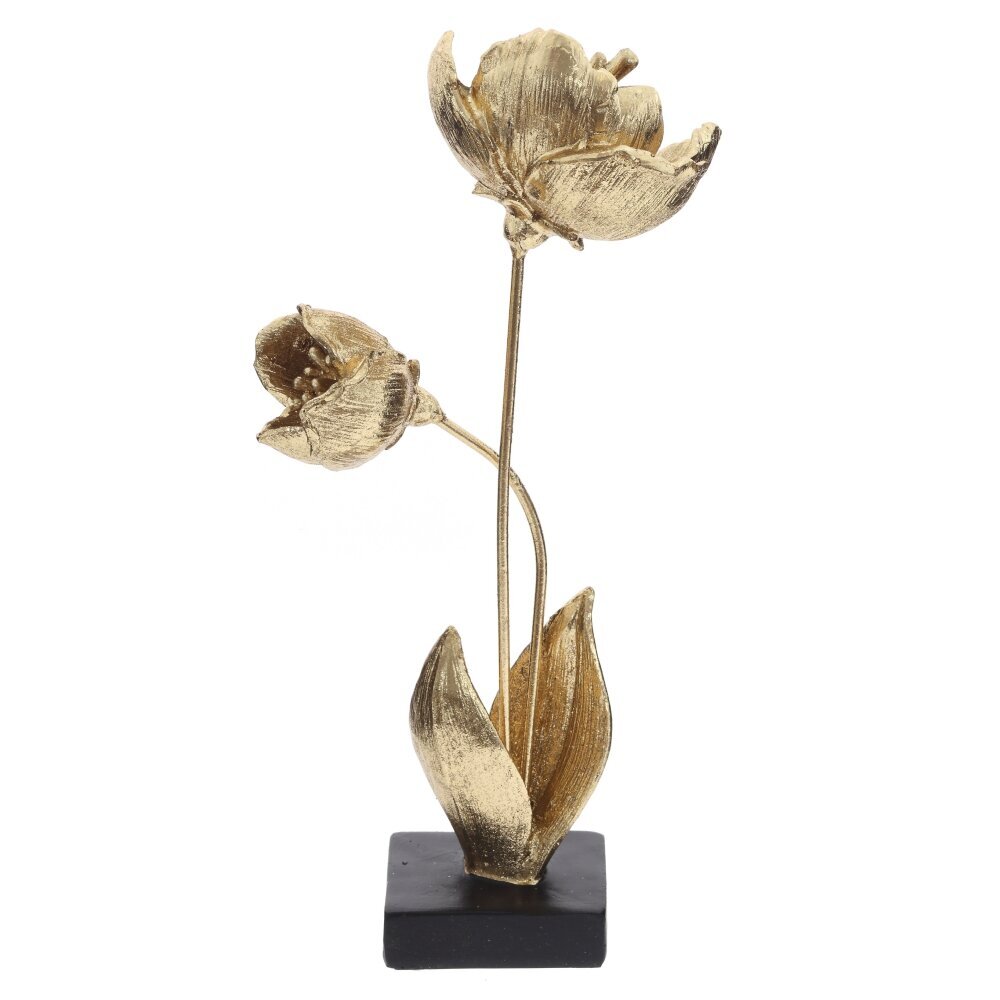 Элегантная декоративная фигурка «Цветок» станет изысканным акцентом в интерьере гостиной, спальни или рабочего кабинета. Выполненная из прочных полимерных материалов, она имитирует изящный цветок с двумя бутонами и объемными лепестками, покрытыми благородным золотистым оттенком. Текстура тщательно проработана, благодаря чему фигурка красиво играет светом и подчеркивает утончённость декора. Статуэтка установлена на устойчивом квадратном основании контрастного тёмного цвета, что делает её удобной для размещения на полке, каминной полке, подоконнике или журнальном столике. Идеальный вариант для подарка и создания ощущения роскоши в доме.