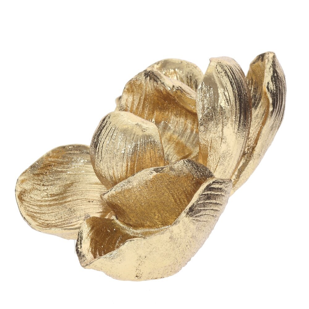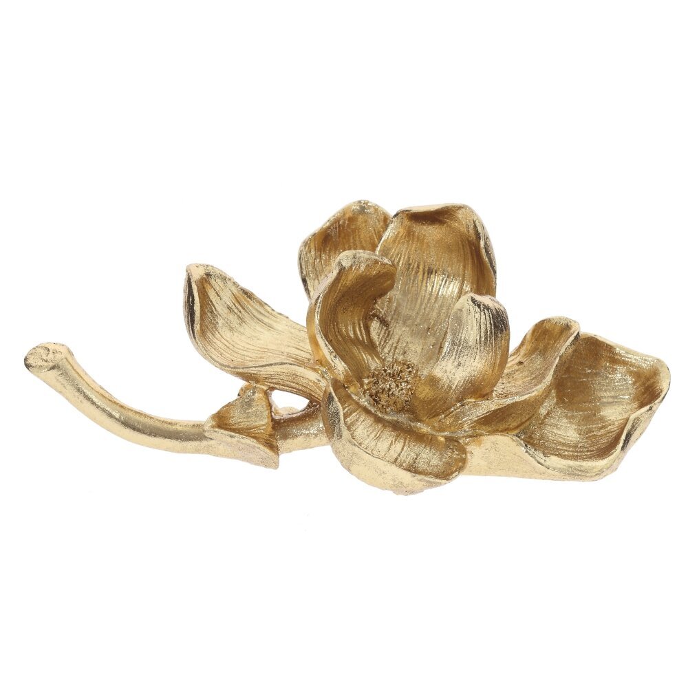 Элегантная декоративная фигурка «Цветок» станет изящным акцентом в любом интерьере. Выполненная из прочных полимерных материалов, она отличается высокой детализацией: плавные линии лепестков, фактурная поверхность и аккуратно прорисованная сердцевина создают ощущение натурального цветка, покрытого благородным золотистым напылением. Фигурка гармонично смотрится на полке, журнальном столике, туалетном столике или в композиции с подсвечниками и вазами. Легкий, но устойчивый декор не боится влаги и легко очищается от пыли, поэтому отлично подходит как для дома, так и для офиса. Такой аксессуар подчеркнет утонченный вкус хозяев и станет приятным подарком к любому празднику.