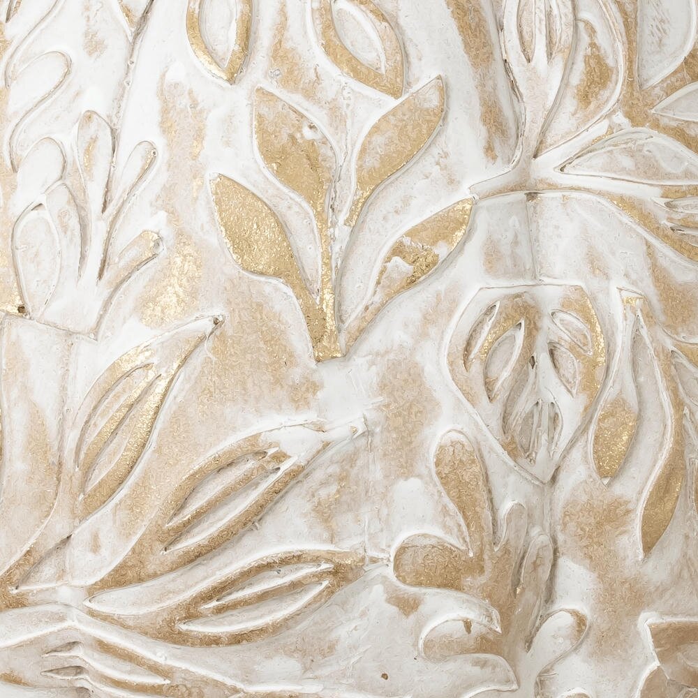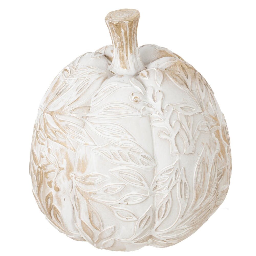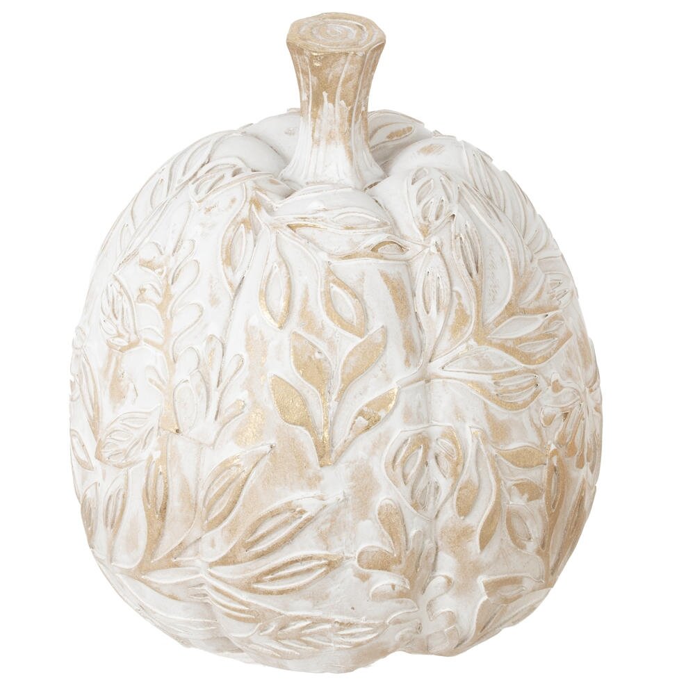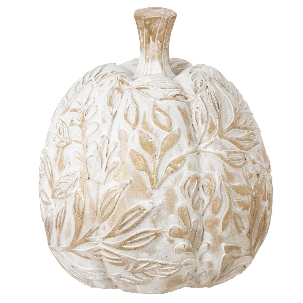 Декоративная фигурка "Тыква" в винтажном стиле станет уникальным дополнением к вашему интерьеру. Ее изящный дизайн и особая рельефная поверхность создают эффект старинной отделки, что придает ей особый шарм. Цвета фигурки - золотой и белый, которые отлично сочетаются между собой и создают непревзойденную гармонию.