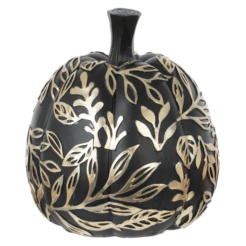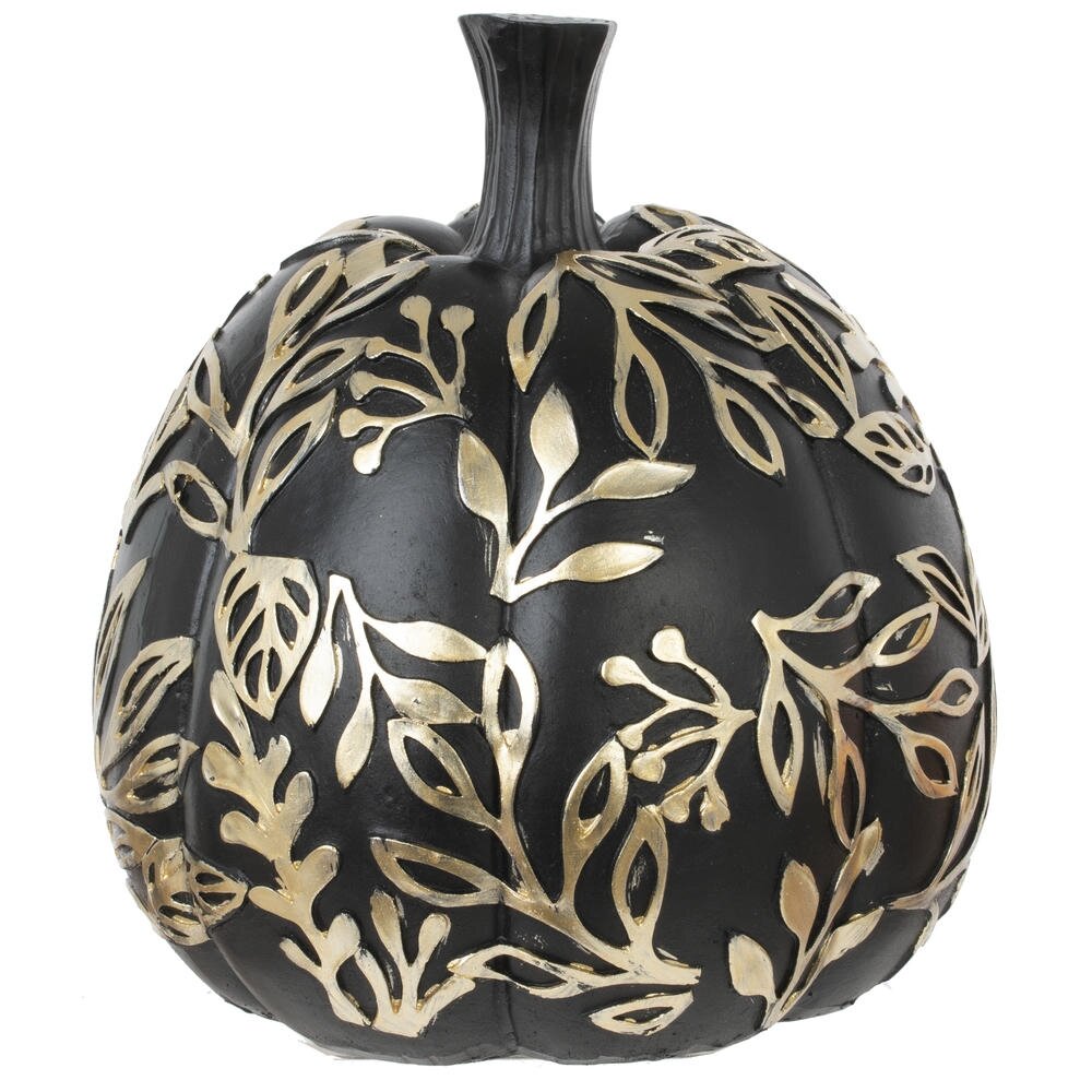 Элегантная декоративная фигурка в форме тыквы станет стильным акцентом в любом интерьере. Выполненная из качественных полимерных материалов, она сочетает в себе матовый чёрный фон и изящный золотистый растительный орнамент. Рельефные веточки и листья создают эффект ручной художественной работы и подчёркивают благородный характер декора. Фигурка идеально подойдёт для оформления гостиной, спальни или праздничного стола, гармонично впишется в осенний декор и композиции к Хэллоуину, но при этом выглядит достаточно универсально, чтобы радовать глаз круглый год. Лёгкая, прочная и устойчивая, она станет удачным подарком ценителям красивых интерьерных деталей и современных декоративных решений.