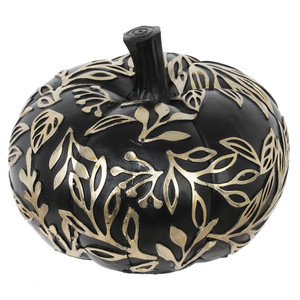 Элегантная декоративная фигурка в форме тыквы станет стильным акцентом в любом интерьере. Выполненная из качественных полимерных материалов, она сочетает в себе матовый чёрный фон и изящный золотистый растительный орнамент. Рельефные веточки и листья создают эффект ручной художественной работы и подчёркивают благородный характер декора. Фигурка идеально подойдёт для оформления гостиной, спальни или праздничного стола, гармонично впишется в осенний декор и композиции к Хэллоуину, но при этом выглядит достаточно универсально, чтобы радовать глаз круглый год. Лёгкая, прочная и устойчивая, она станет удачным подарком ценителям красивых интерьерных деталей и современных декоративных решений.