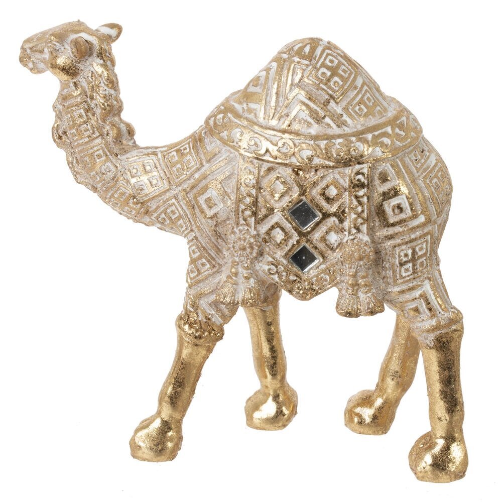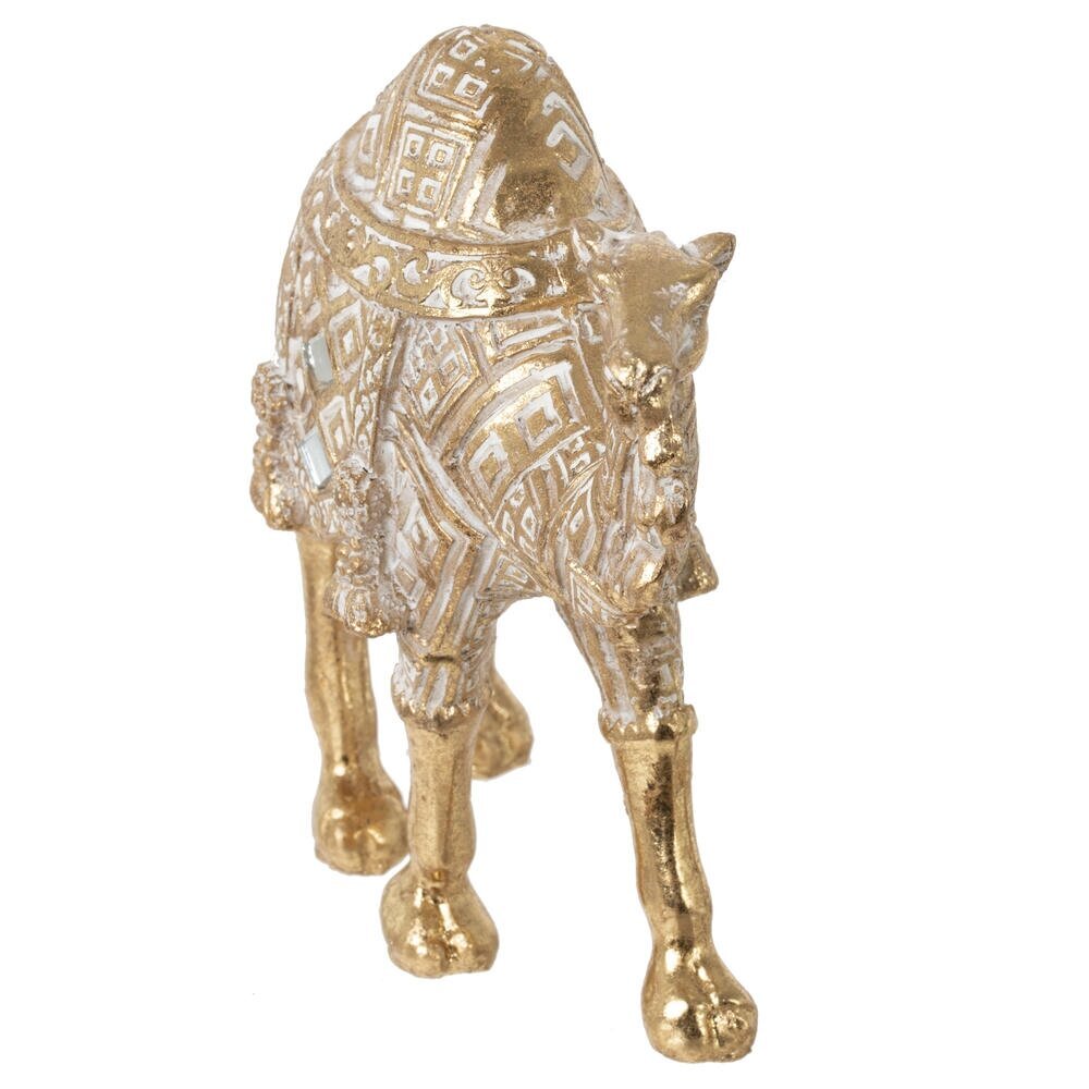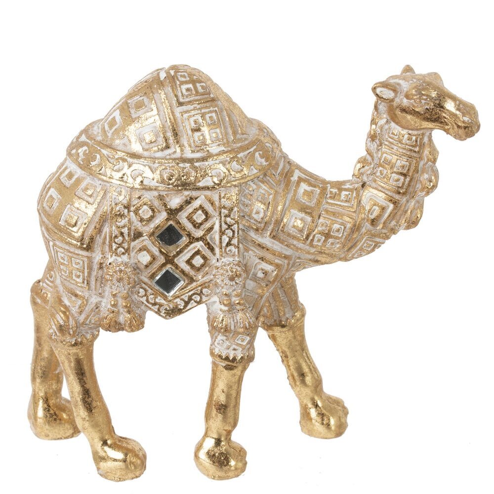 Декоративная фигурка «Верблюд» станет эффектным акцентом в интерьере и подчеркнёт восточную атмосферу вашего дома. Выполненная из прочных полимерных материалов, она отличается детализированной проработкой: рельефное «убранство» с геометрическим орнаментом, благородное золотистое покрытие и лёгкие потертости создают ощущение антикварной вещи. Фигурка гармонично смотрится на полке, каминной полке, туалетном столике или в витрине, подходит для классических и этнических интерьеров. Идеальна как символ удачи и благополучия, оригинальный подарок любителям путешествий и необычных аксессуаров для дома.