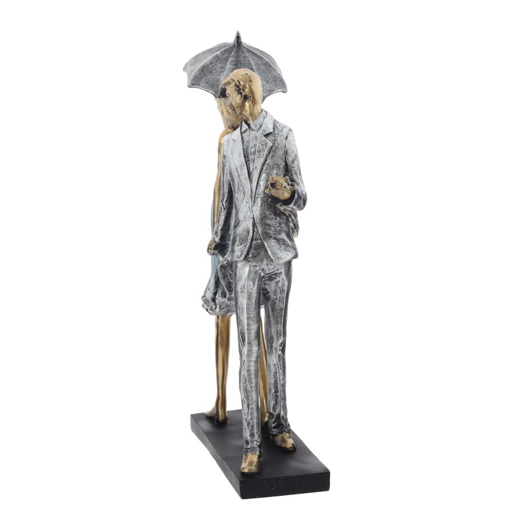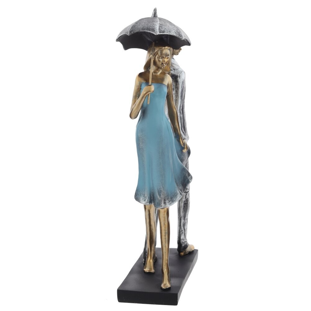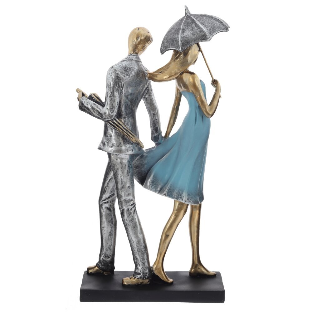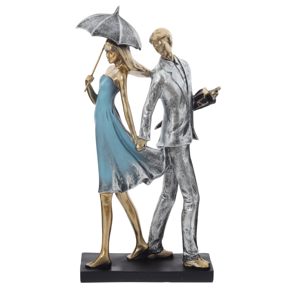Декоративная фигурка «Влюблённая пара» – изящный акцент для современного интерьера. Композиция изображает молодого мужчину и женщину, прогуливающихся под одним зонтом. Девушка в лёгком голубом платье с развевающимся подолом, мужчина в стильном костюме держит её за руку, создавая ощущение движения и романтики. Контраст тёплого золотистого тона кожи и холодного серебристого покрытия костюма подчёркивает изысканность изделия. Фигурка выполнена из прочных полимерных материалов, устойчивых к выцветанию и мелким повреждениям. Идеально подойдёт как символ любви и гармонии для оформления гостиной, спальни или рабочего кабинета, а также станет запоминающимся подарком на свадьбу, годовщину или День святого Валентина.