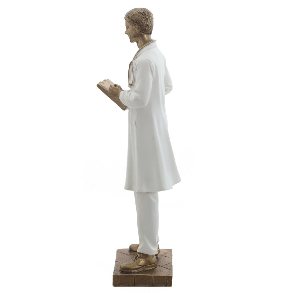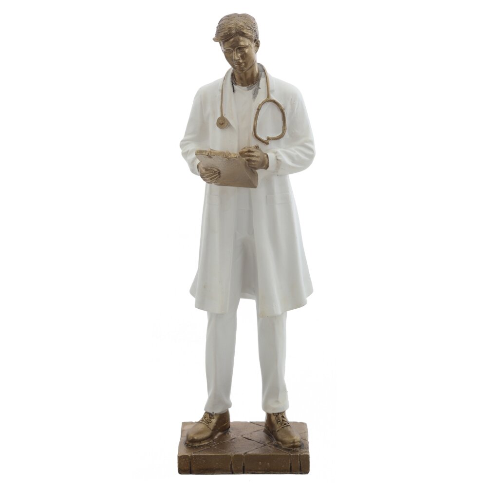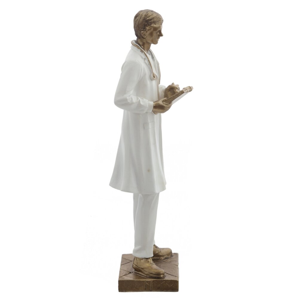 Декоративная фигурка «Врач» — стильный акцент для интерьера кабинета, дома или медицинского центра. Фигура мужчины-доктора в белом халате с золотистыми деталями и стетоскопом передает образ внимательного и заботливого специалиста. В руках он держит папку с записями, что символизирует профессионализм и ответственность. Фигурка выполнена с аккуратной прорисовкой складок одежды и мимики, устойчиво стоит на прямоугольной подставке. Нейтральная бело?золотая гамма легко впишется в современный офис, приемную, домашний кабинет или книжную полку. Это отличный вариант подарка врачу, студенту-медику, преподавателю или коллеге на профессиональный праздник, день рождения или в знак благодарности за заботу и помощь.