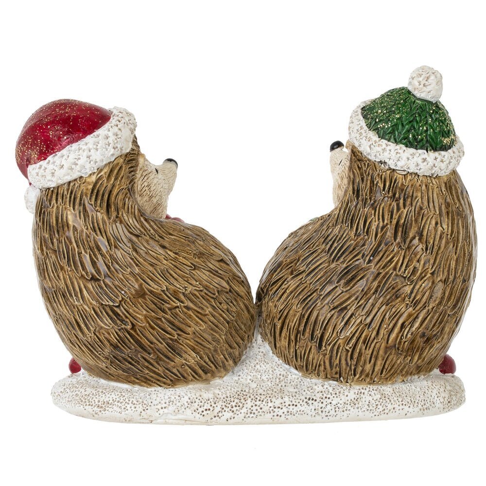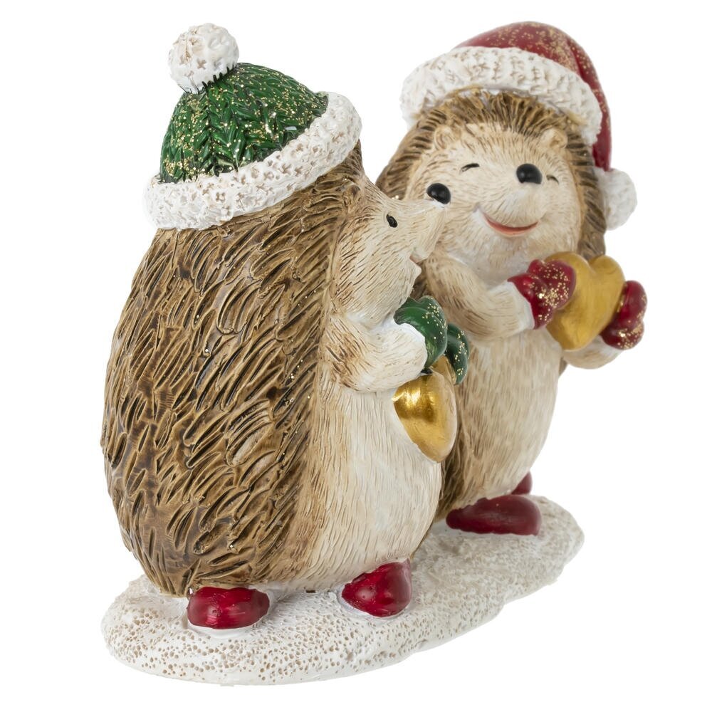 Фигурка в виде двух милых ежей, держащих в лапках золотые сердца. Изделие выполнено из полимерных материалов, с особым вниманием к деталям. Фигурка обязательно привнесет нотку очаровательного новогоднего стиля в любой интерьер.