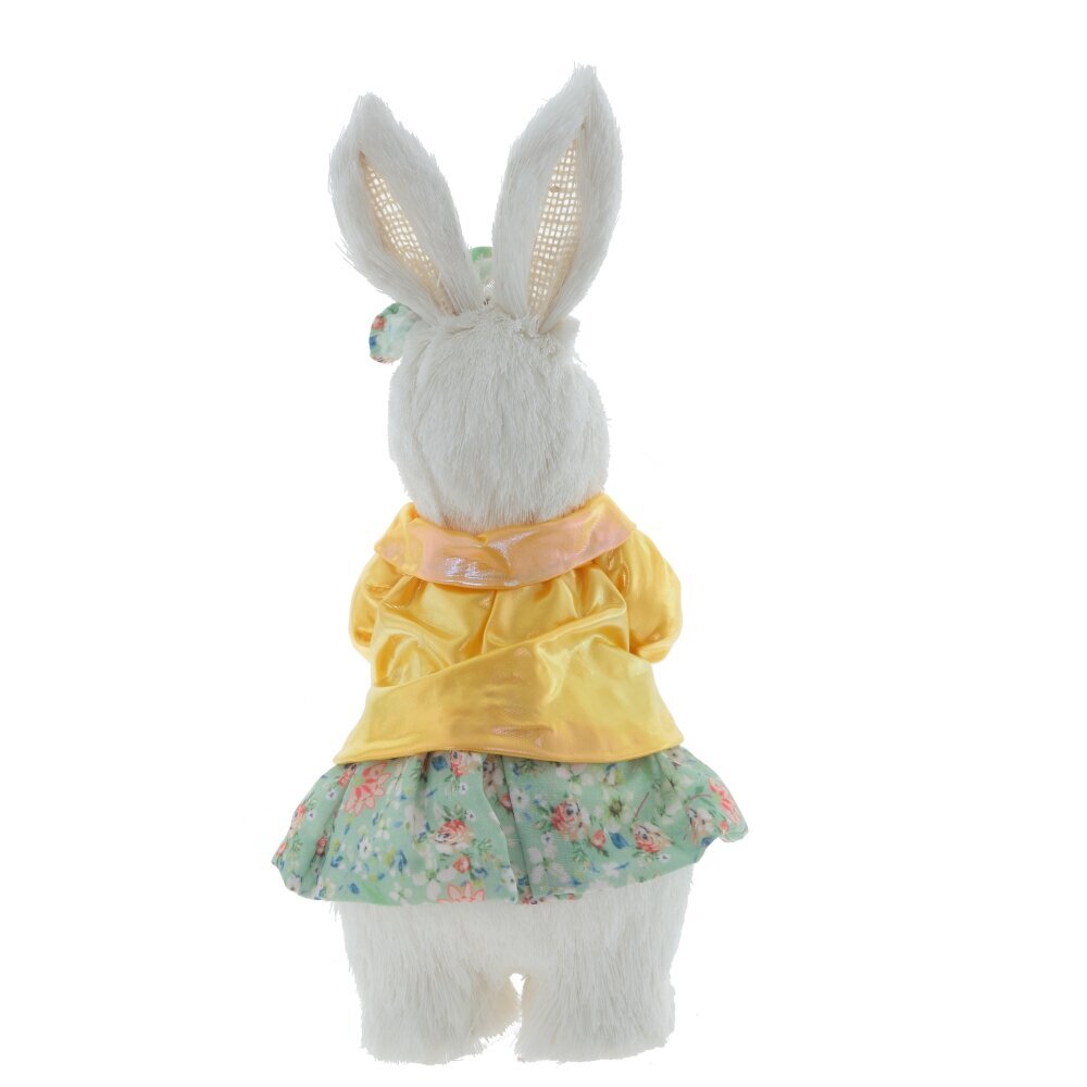 Этот пасхальная зайка — стильное и очаровательное украшение, выполненное из полимерных и текстильных материалов. Ее мягкое белоснежное покрытие придает пушистый и уютный вид, создавая ощущение тепла и доброжелательности. Ушки зайки аккуратно оформлены с полупрозрачными вставками, добавляющими естественности и легкости образу. Зайка одета в нарядный желтый пиджак из блестящей ткани и цветную юбочку, что делает ее нарядным и праздничным. В лапках она держит большую декоративную конфету пастельных оттенков, завернутую в прозрачную упаковку, что символизирует сладкие подарки и радость Пасхи. Детализированные глазки и носик придают игрушке выразительность, а ее устойчивость позволяет использовать ее как настольное или напольное украшение в интерьере. Эта фигурка станет отличным символом Пасхи, привнося атмосферу праздника в дом. Ее можно разместить на праздничном столе, полке или в детской комнате, создавая уют и весеннее настроение. Благодаря сочетанию полимерных и текстильных материалов фигурка выглядит одновременно нежной и прочной, сохраняя свою привлекательность долгое время.