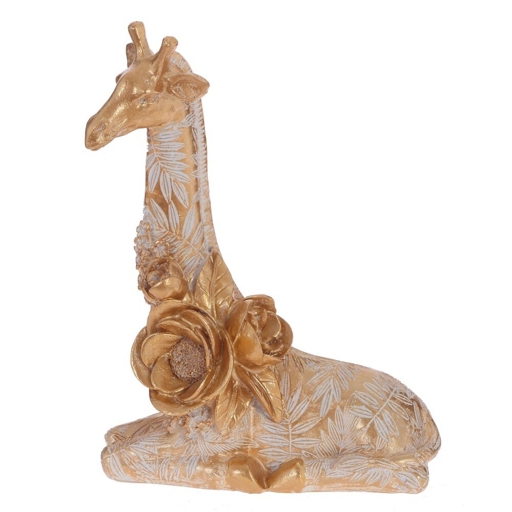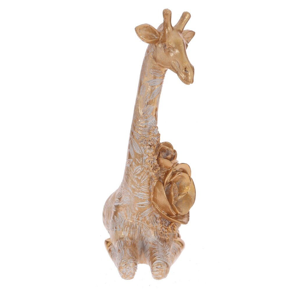Декоративная фигурка "Жираф" - очаровательный предмет интерьера, который добавит изысканности и элегантности вашему дому. Ее высота 18 см создает идеальный баланс между компактностью и выразительностью. Изготовленная из полимерных материалов золотистого цвета, фигурка изображает сидящего жирафа с цветочным украшением на шее. Этот необычный элемент придаст вашему интерьеру неповторимый шарм и станет прекрасным акцентом в любом помещении. Он будет радовать вас своей красотой и изяществом каждый день, напоминая о красоте и удивительном разнообразии природы. Пусть этот жираф принесет в ваш дом радость и уют!