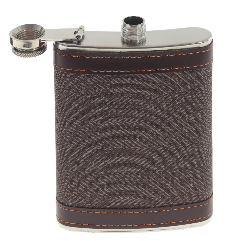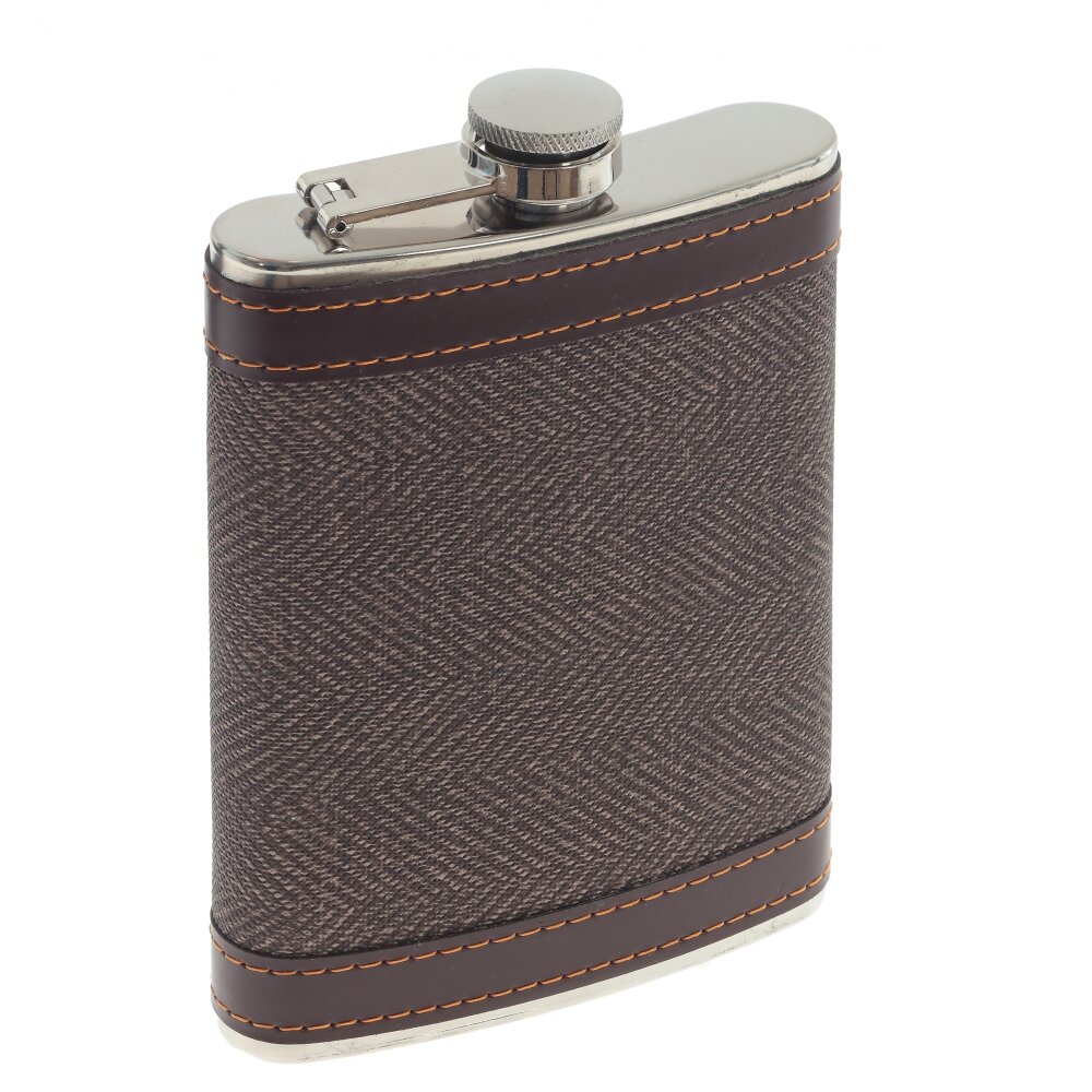 Дизайн и отменное качество делает эту фляжку желанным подарком для любого мужчины. Изготовлена из нержавеющей стали, декорирована экокожей. Закручивающаяся крышечка крепится к основанию горлышка, что делает невозможным её потерю, но в то же время не мешает сделать глоток прямо из фляги.