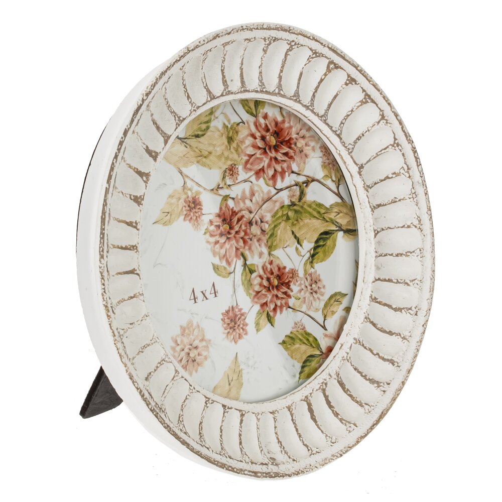 Элегантная фоторамка круглой формы станет прекрасным дополнением интерьера и поможет сохранить дорогие сердцу воспоминания. Рамка выполнена из качественных полимерных материалов и защищает фото стеклом, обеспечивая долговечность изображения. Дизайн в стиле прованс с нежным винтажным покрытием и благородным оттенком придаст декоративный акцент в классическом или ретро-интерьере. Размер области для фото – 9*10 см, что идеально подходит для размещения памятных снимков. Изысканный орнамент и тонкое оформление делают рамку стильным подарком для близких.
