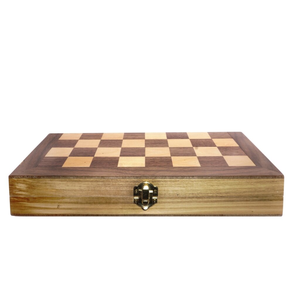 Настольная игра 3 в 1 (шахматы, шашки, нарды) — это универсальный набор для любителей классических стратегических игр. Изделие выполнено из натурального дерева, что придаёт ему прочность, долговечность и эстетическую привлекательность. Доска представляет собой раскладную конструкцию с металлическим замком, внутри которой удобно хранить игровые фигуры и фишки. На одной стороне размещено игровое поле для шахмат и шашек, а на обратной находится доска для нард. Шахматы и шашки идут с аккуратно выточенными деревянными фигурами, обеспечивающими комфортную игру. Такой набор идеально подходит как для домашних игр, так и для путешествий. Благодаря элегантному дизайну и натуральным материалам, он станет отличным подарком для любителей интеллектуальных игр.