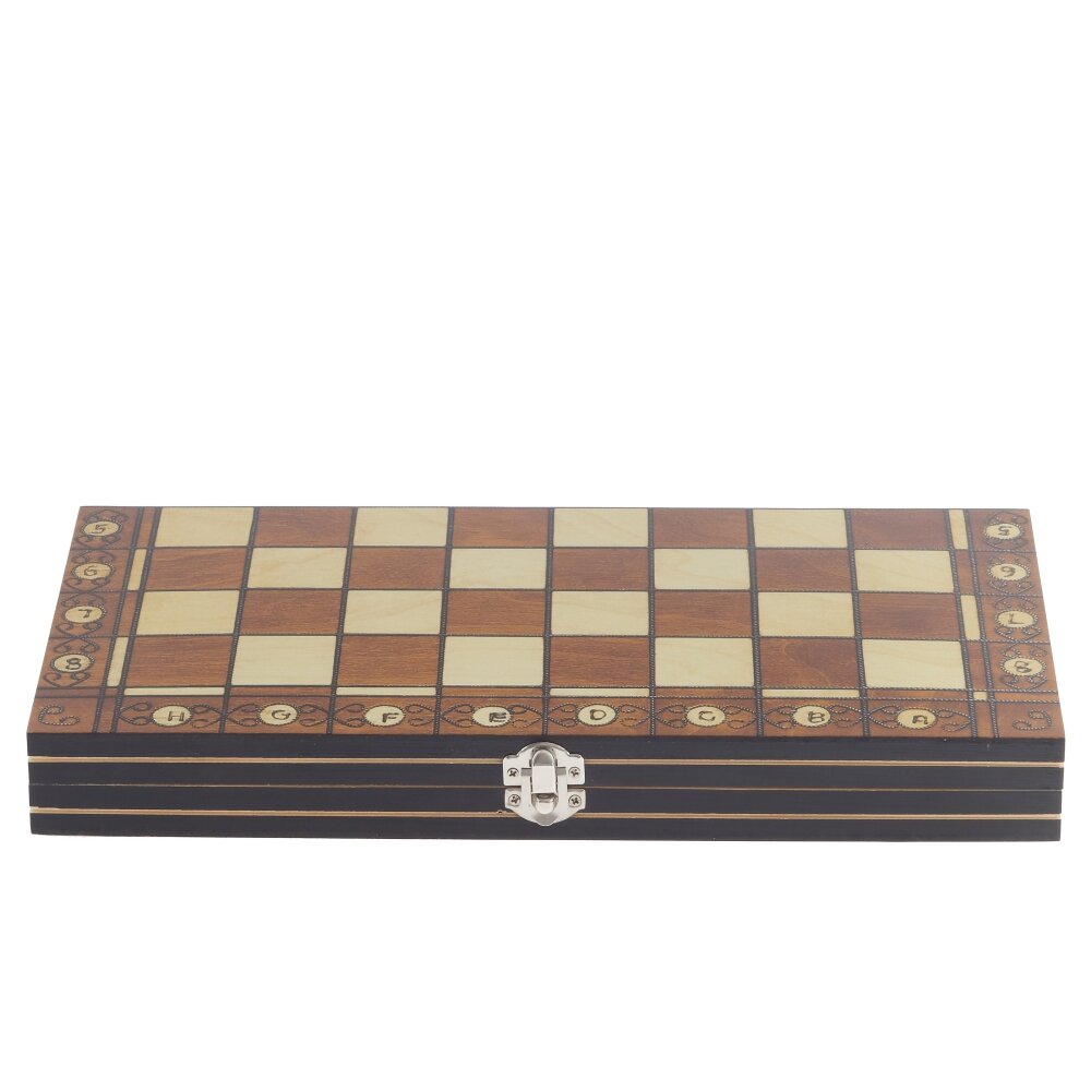 Настольная игра 3 в 1 – универсальный набор для всей семьи и компании друзей. В одном деревянном чемоданчике собраны классические игры: шахматы, шашки и нарды. Корпус выполнен из гладко обработанного дерева с аккуратными металлическими петлями и замком, которые обеспечивают надежное закрытие и долговечность конструкции. Внутри предусмотрены отдельные отделения для фигур, все элементы удобно хранить и брать с собой в поездки. Легкие, но устойчивые шахматные фигуры и шашки выполнены в двух контрастных цветах, поле для нард нанесено на внутреннюю поверхность доски. Комплект отлично подходит как для обучения детей логике и стратегии, так и для увлекательных партий взрослых. Стильный внешний вид делает набор достойным подарком для ценителей настольных игр.