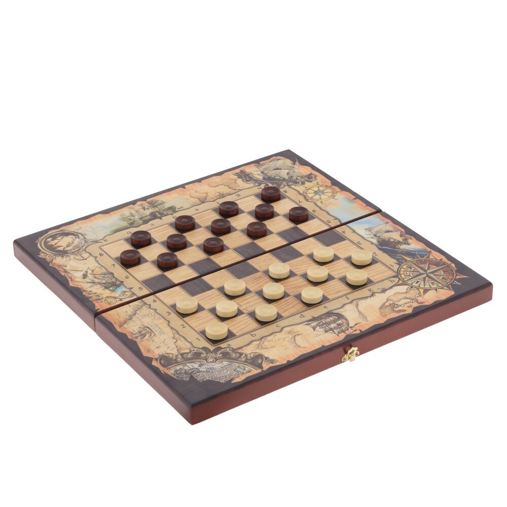GAEM Игра настольная 3 в 1 (шахматы, шашки, нарды) "Морские", L50 W25 H6 см