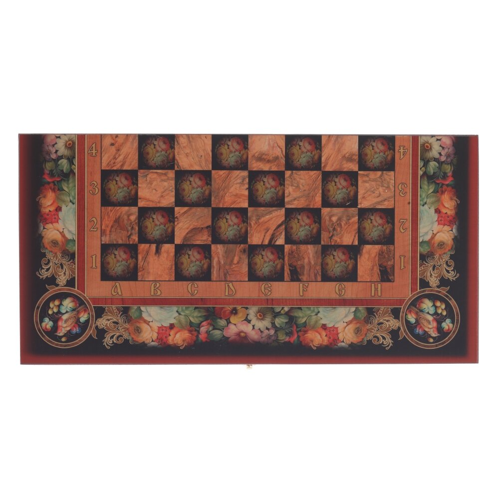 Элегантный набор 3 в 1 «Цветы» объединяет шахматы, шашки и нарды в одном деревянном кейсе. Корпус украшен насыщенным цветочным орнаментом, координатами по полям и аккуратной окантовкой, что придаёт игре подарочный вид. Размер в сложенном состоянии L50 ? W25 ? H6 см (в разложенном — 50 ? 50 см), есть надёжная металлическая защёлка для переноски. Классические шахматные фигуры двух оттенков выполнены из дерева и приятно лежат в руке. Внутри — поле для нард и место для хранения шашек и кубиков. Набор подойдёт для дома, офиса, поездок и станет удачным подарком ценителям настольных игр и красивых аксессуаров.