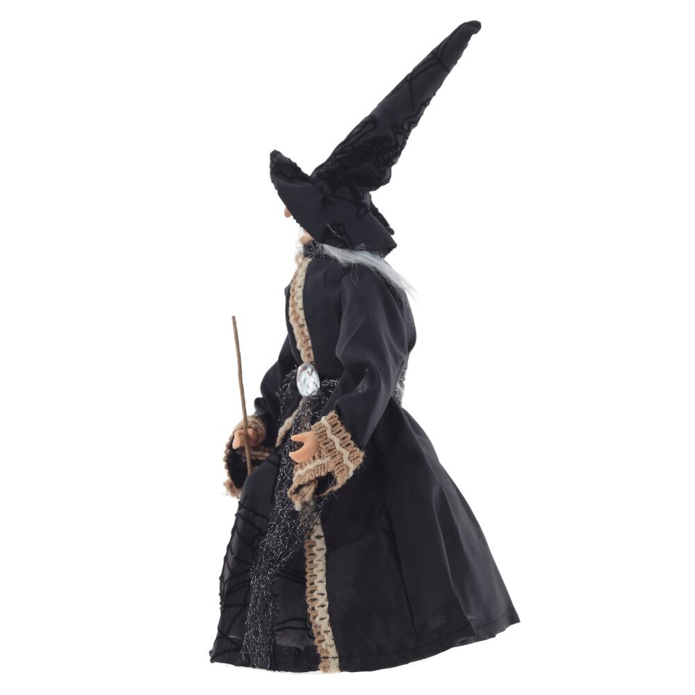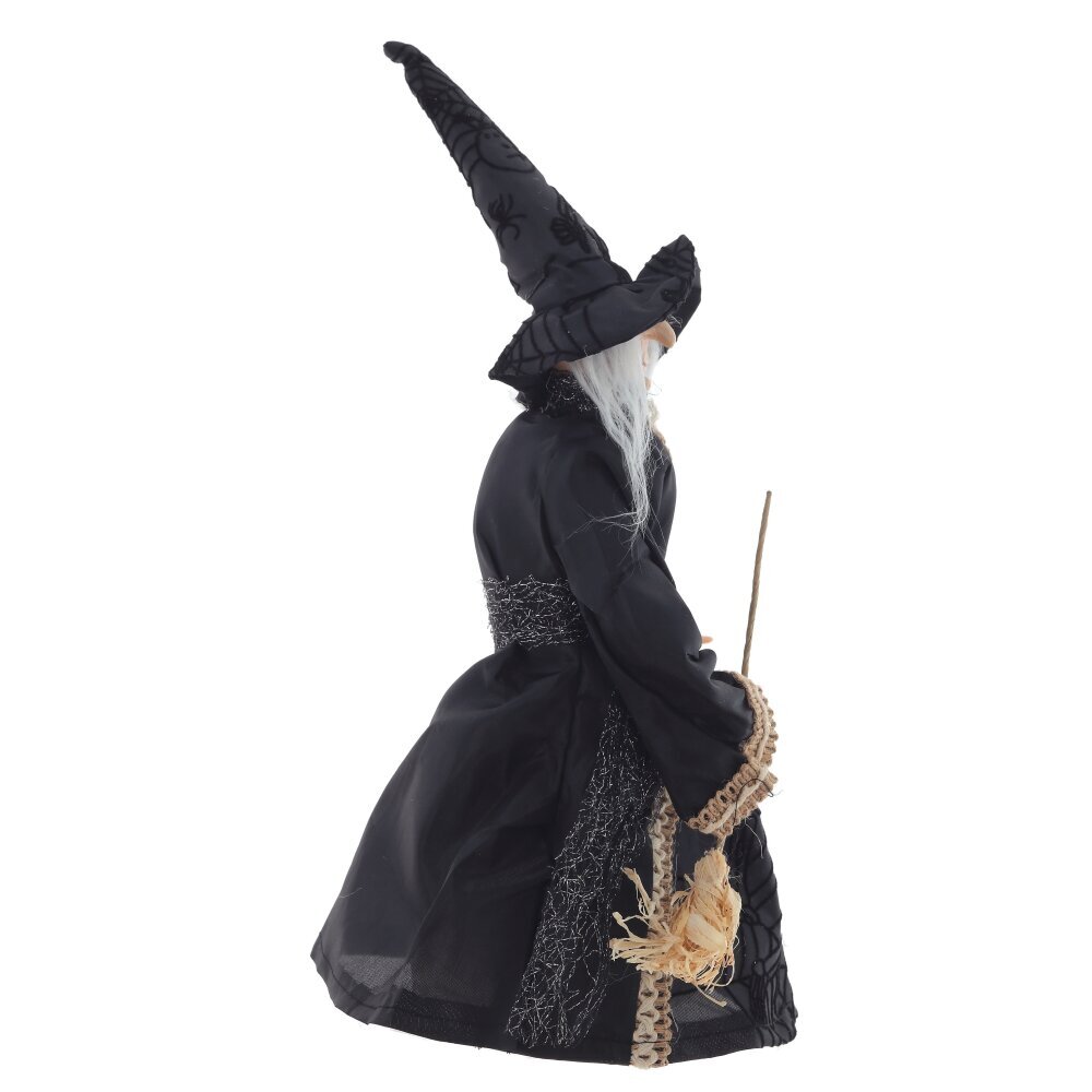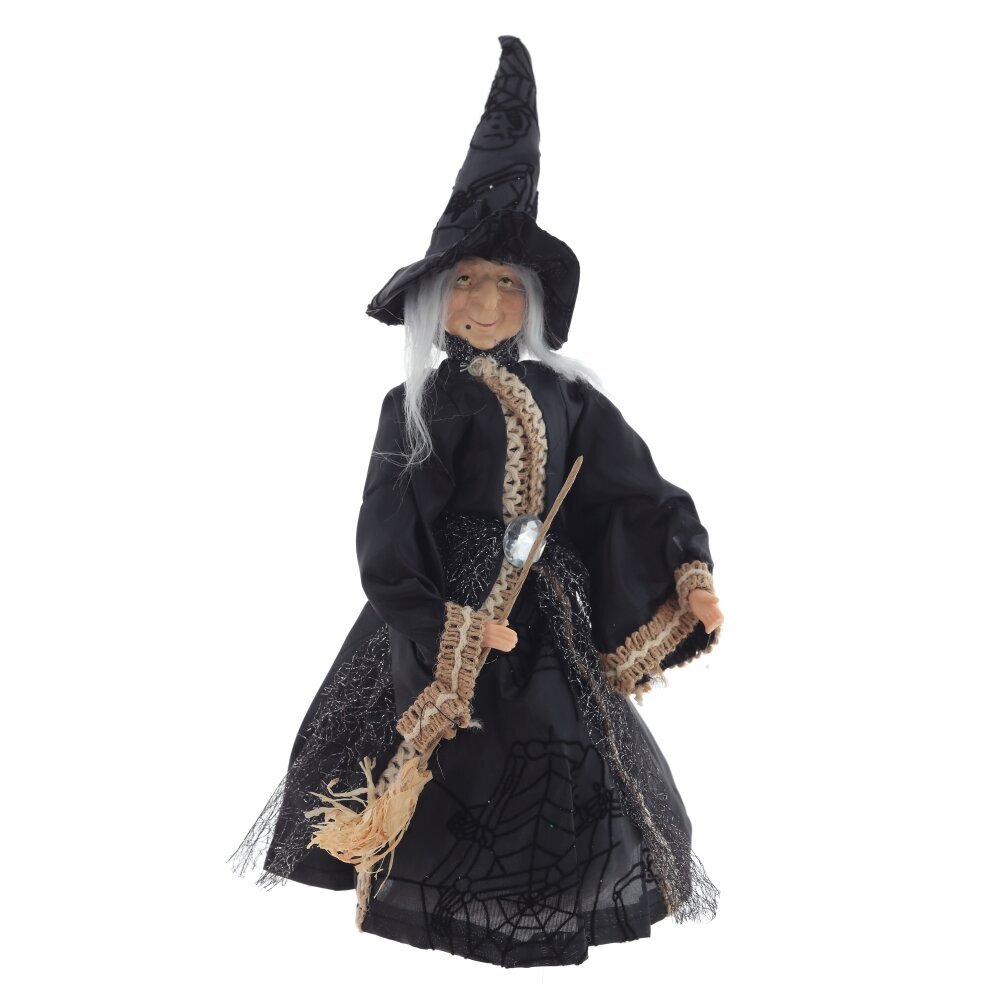 Эта игрушка выполнена с вниманием к деталям и мастерством, используя текстильные и полимерные материалы, что придаёт ей не только привлекательный внешний вид, но и долговечность. Изящное черное платье, украшенное характерным для бабушки Яги рисунком паутины, создаёт атмосферу таинственности и сказочного присутствия. На голове у игрушки располагается традиционный колпак, который также выполнен с уникальным дизайном, добавляющим образу волшебства. Седые волосы Бабы-яги передают мудрость и опыт этого персонажа. В руке у неё находится метла, которая является одним из самых известных атрибутов, символизирующих связь с магией и волшебством. Даже несмотря на мрачный облик, игрушка излучает особое обаяние, которое делает её привлекательной и для детей, и для взрослых.