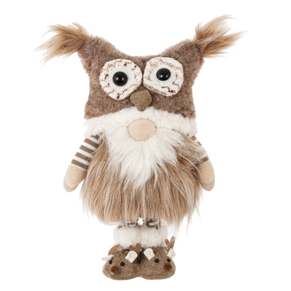 Очаровательный набивной гном в шапочке в виде совы и мягких ботиночках — это яркий и необычный элемент новогоднего декора, который сразу привлекает внимание своим оригинальным дизайном. Его уютная шапка добавляет игривости. Гном выполнен из мягких, приятных на ощупь материалов, что делает его идеальным как для украшения интерьера, так и в качестве подарка. Он отлично впишется в зимнюю композицию, украсит полку, камин, подоконник или праздничный стол. Такой гном создаст в доме атмосферу уюта, веселья и волшебства, став настоящим символом новогоднего настроения.
