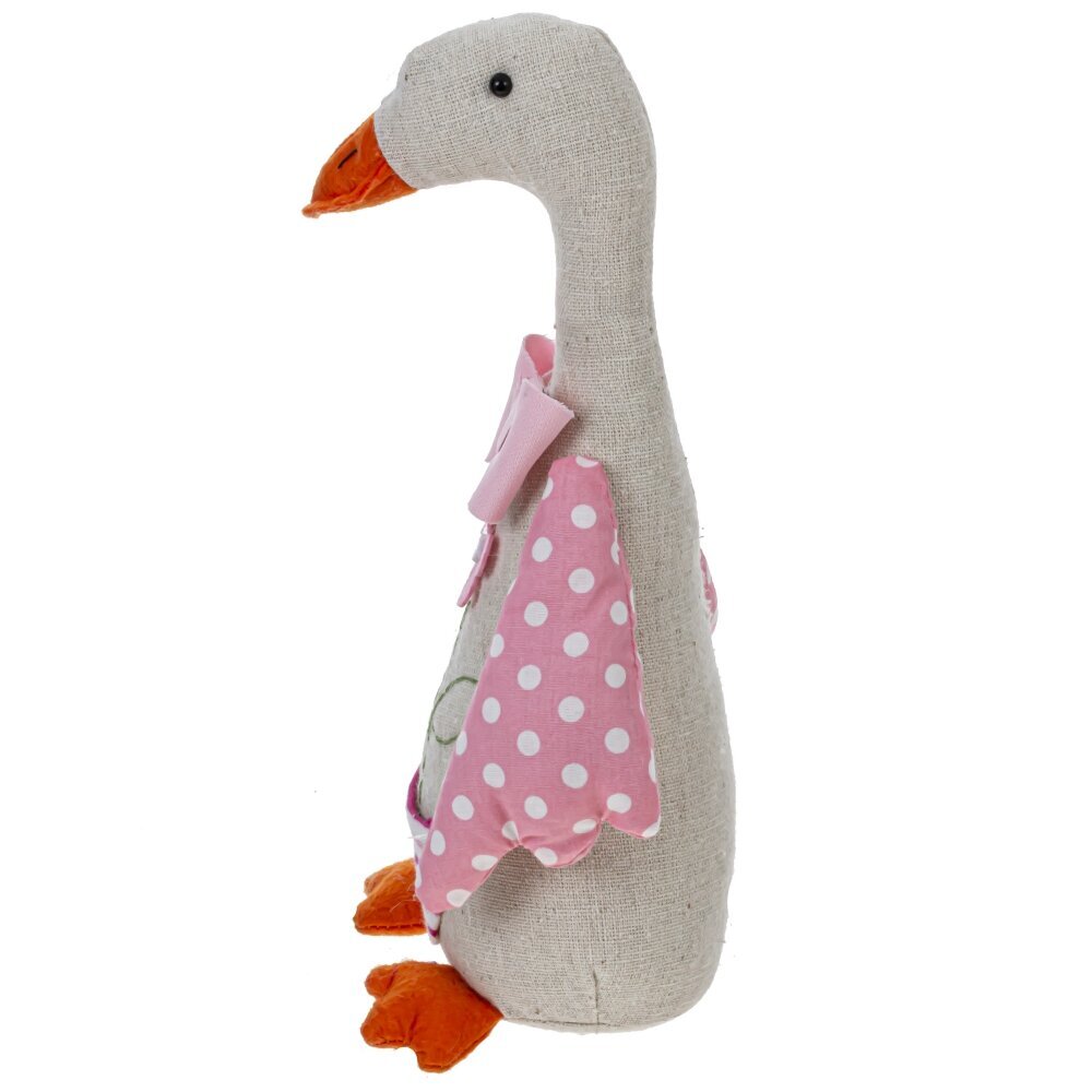 Мягкая набивная игрушка «Гусь в розовом» — очаровательный пасхальный декор для дома и подарков. Игрушка выполнена из светлой льняной ткани, украшена розовыми крылышками в белый горошек и нежным бантиком. На животике — аппликация в виде цветочка и кармашка с полосками, что придаёт изделию особый уют и ручной шарм. Яркий оранжевый клюв и лапки создают весеннее настроение и привлекают внимание детей. Такой гусь станет стильным элементом пасхальной композиции, украшением детской комнаты или милым сувениром для друзей и близких. Подходит для фотосессий, оформления подарочных корзин и сервировки праздничного стола.
