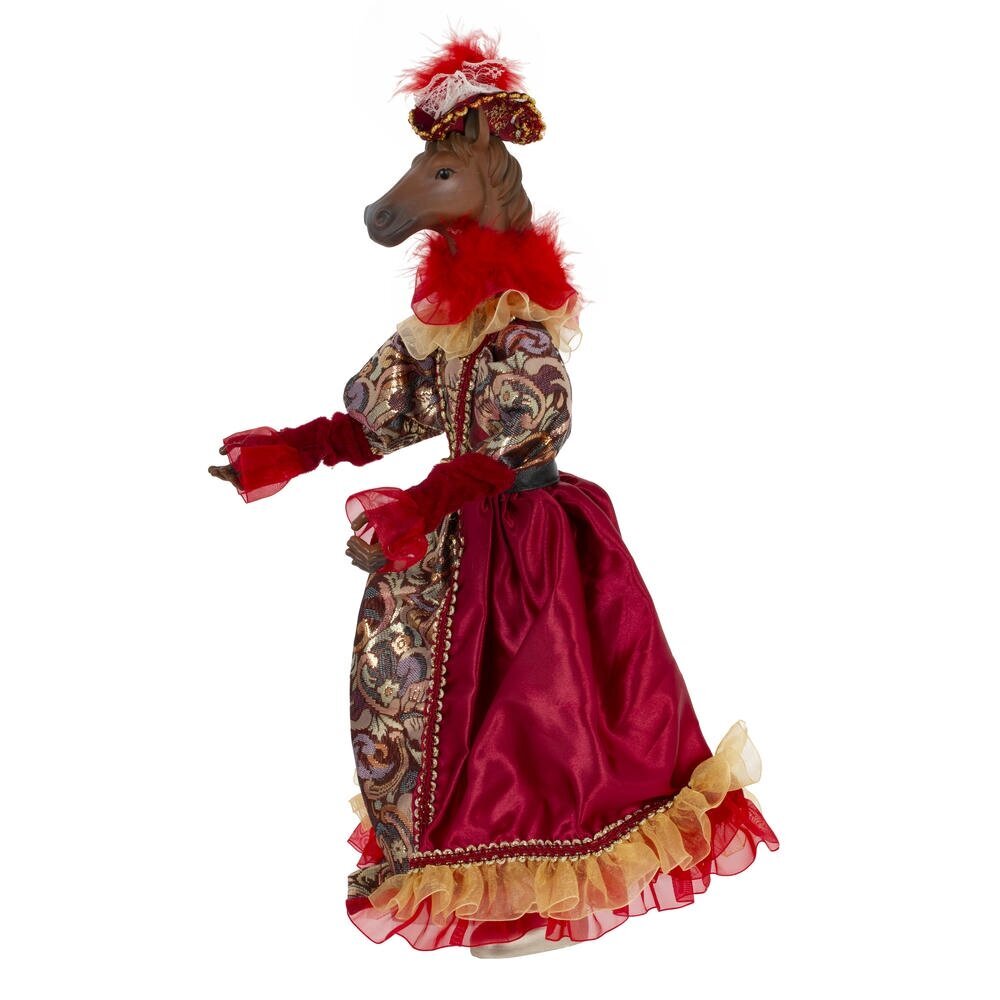 Набивная игрушка "Лошадь" в придворном платье — изящный и необычный элемент новогоднего или интерьерного декора. Мягкая фигурка лошади выполнена с особым вниманием к деталям: роскошное платье из блестящей ткани придаёт образу торжественность и сказочность. Игрушка создаёт атмосферу уюта и волшебства, отлично смотрится под ёлкой, на полке или в композиции с другими праздничными аксессуарами. Благодаря удобной петельке, изделие можно подвесить , например, на ёлку.Подойдёт как украшение, сувенир или оригинальный подарок.Стоит отметить, что голова игрушки выполнена из пластмассы, что делает изделие более легким, чем другие полимерные материалы.