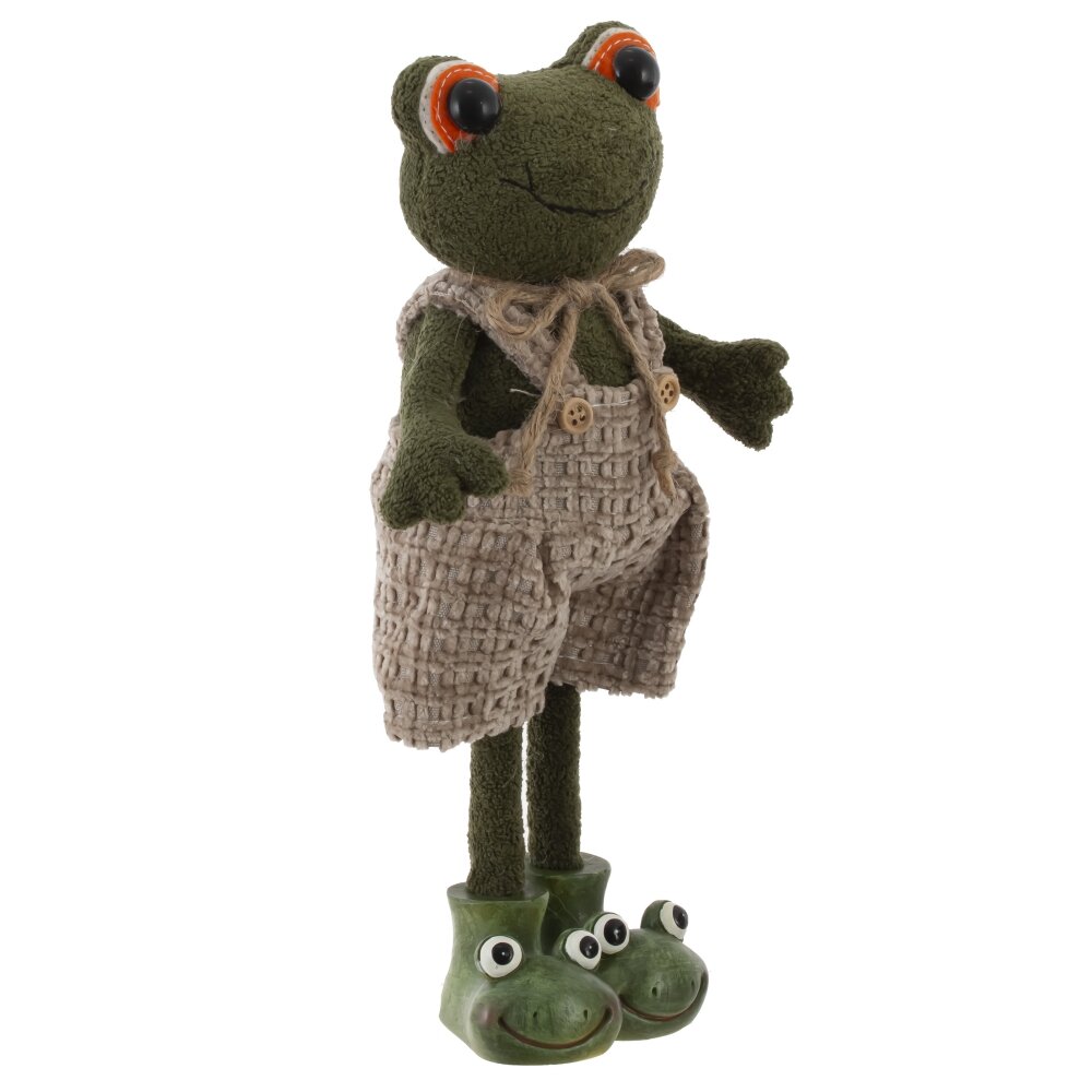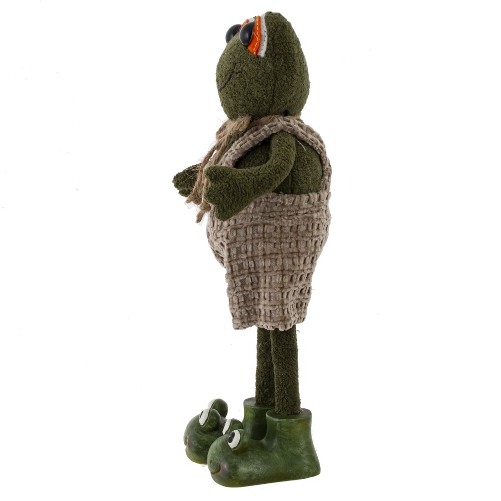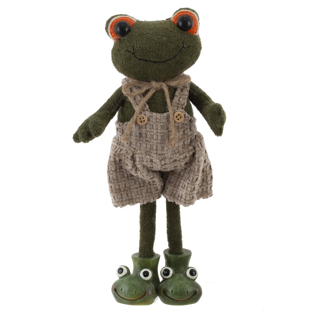 Набивная игрушка «Лягушка» – очаровательный пасхальный декор для дома и подарка. В ассортименте два вида: лягушка в платье и лягушка в коротких штанишках с подтяжками. Мягкое текстильное тело приятно на ощупь, устойчивые фигурные ножки позволяют игрушке уверенно стоять. Большие выразительные глазки и дружелюбная улыбка понравятся детям и взрослым. Игрушка идеально дополняет пасхальные интерьерные композиции с кроликами, корзинами и цветами, подходит для фотозон и оформления праздничного стола, а также станет милым сувениром друзьям и близким.