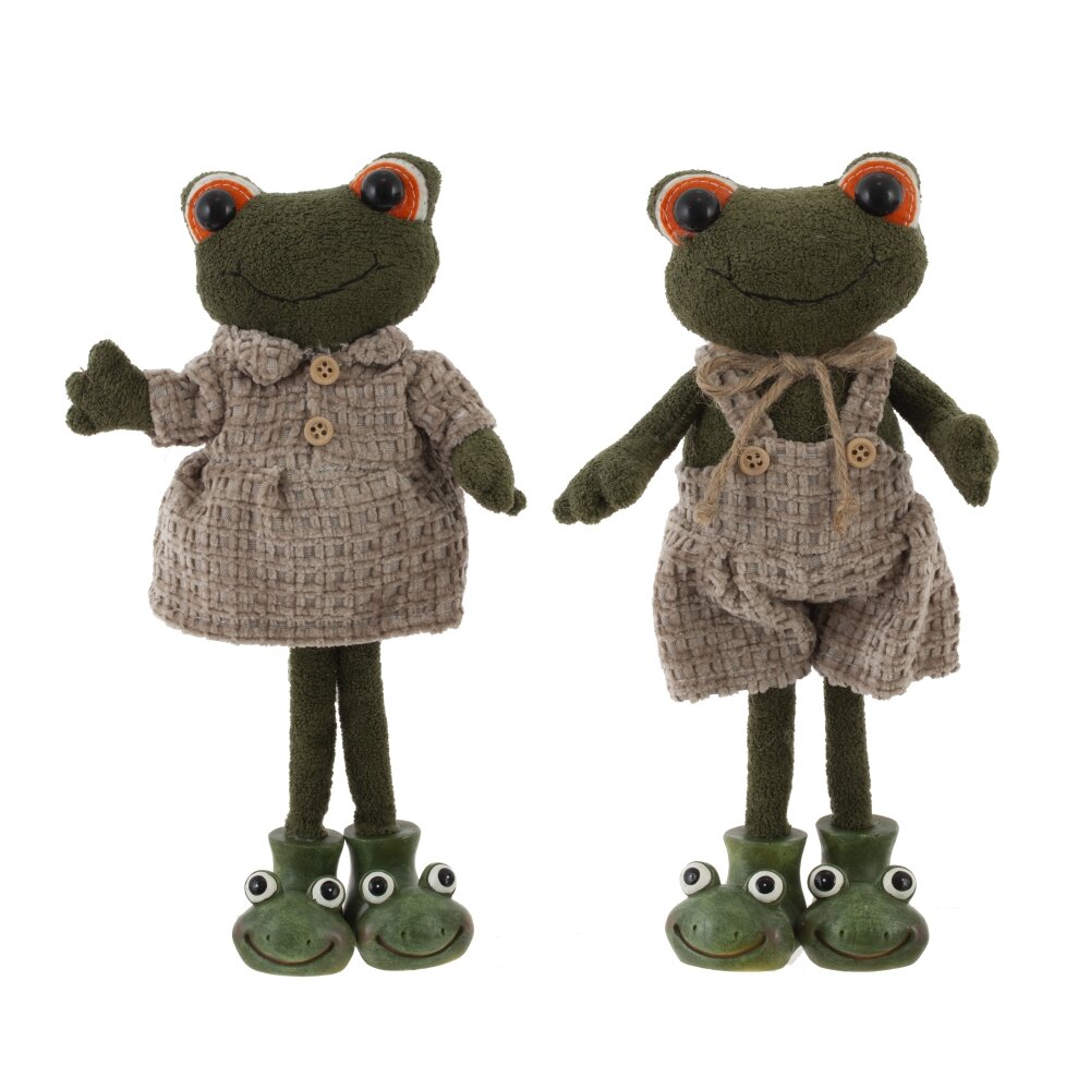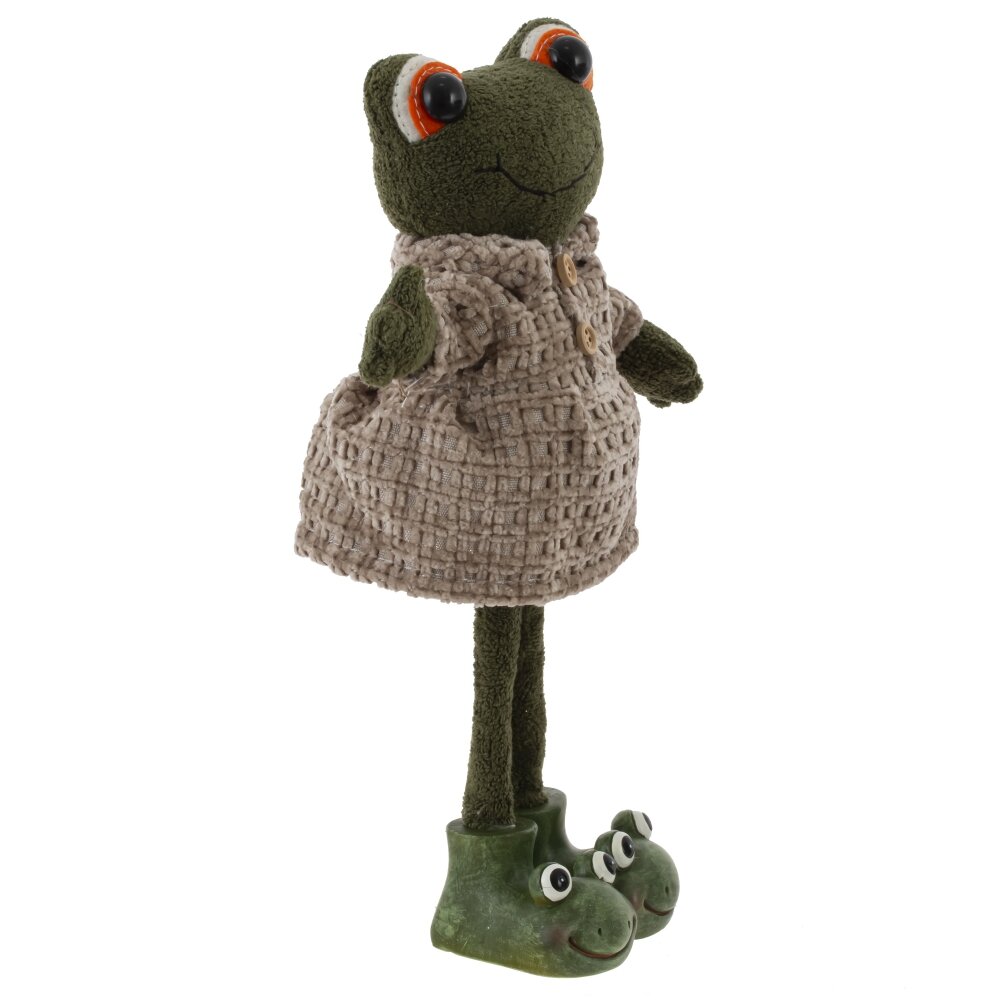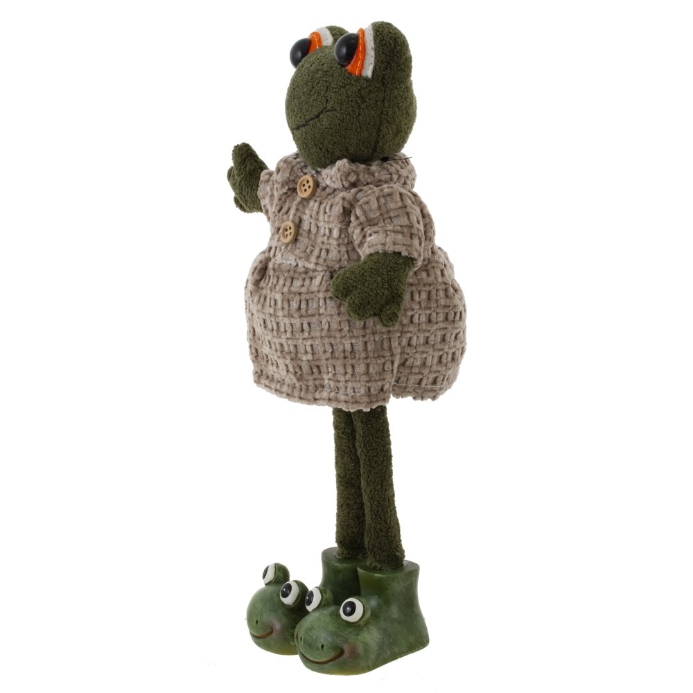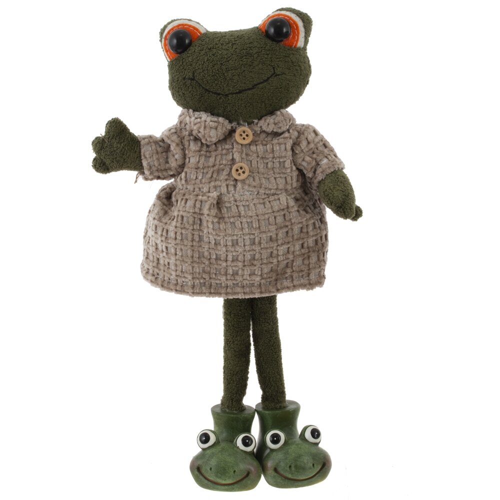 Набивная игрушка «Лягушка» – очаровательный пасхальный декор для дома и подарка. В ассортименте два вида: лягушка в платье и лягушка в коротких штанишках с подтяжками. Мягкое текстильное тело приятно на ощупь, устойчивые фигурные ножки позволяют игрушке уверенно стоять. Большие выразительные глазки и дружелюбная улыбка понравятся детям и взрослым. Игрушка идеально дополняет пасхальные интерьерные композиции с кроликами, корзинами и цветами, подходит для фотозон и оформления праздничного стола, а также станет милым сувениром друзьям и близким.