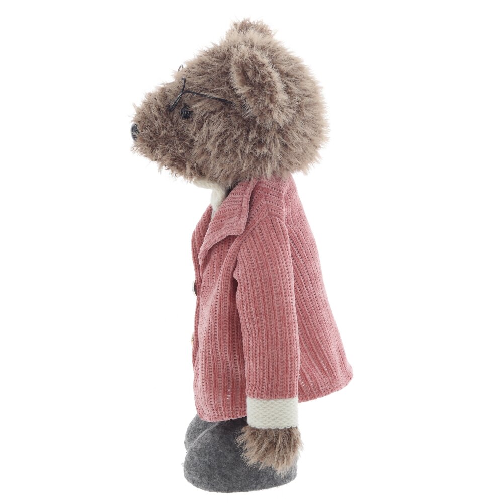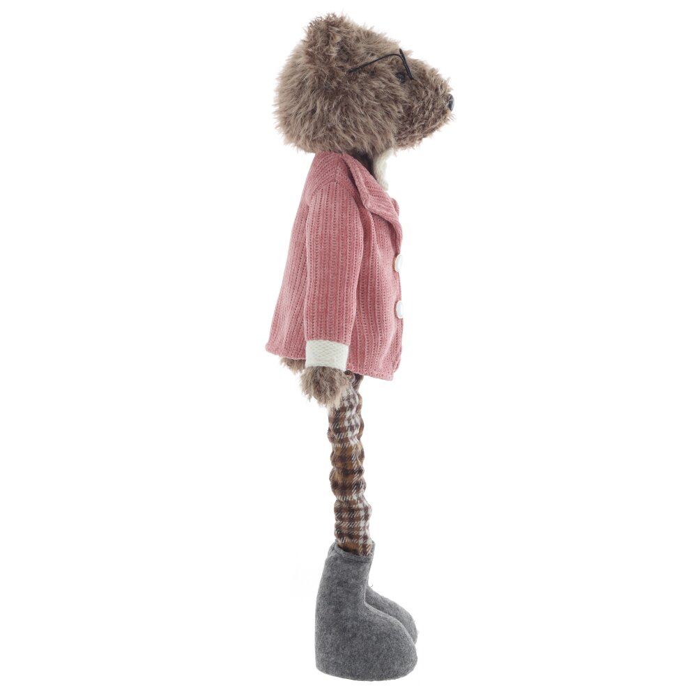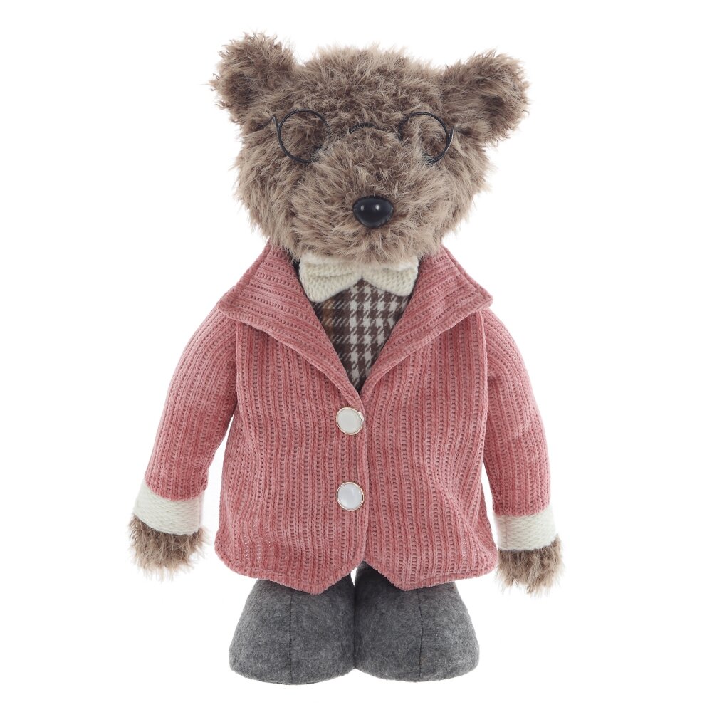 Очаровательная набивная игрушка — медвежонок-мальчик в стильной и уютной одежде станет настоящим украшением любой комнаты. Он одет в розовый пиджак и коричневые клетчатые штанишки, подчёркивающие его утончённый образ. На шее — аккуратная белая бабочка, добавляющая милый акцент. Особенность игрушки — телескопические ножки, которые можно вытягивать, придавая медвежонку любую высоту. Игрушка идеальна для декора, коллекционирования или в подарок тем, кто любит уют и милые детали.