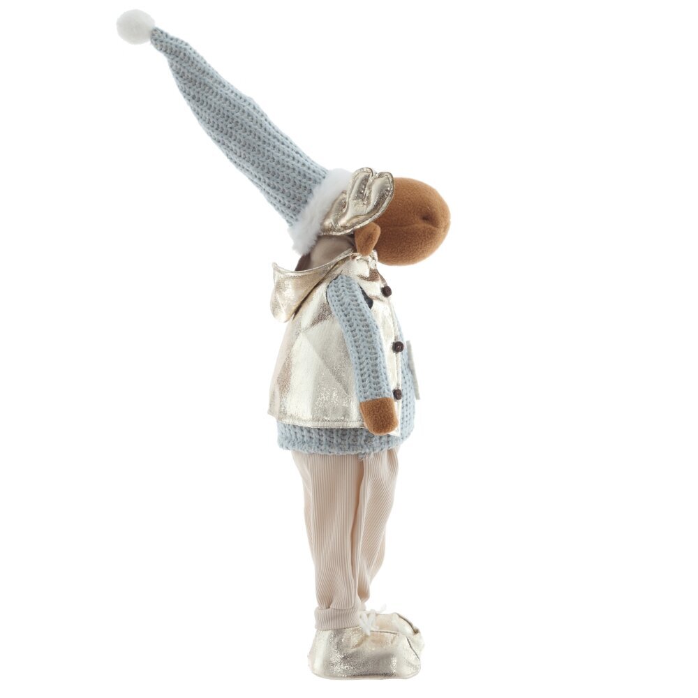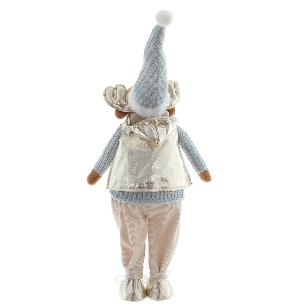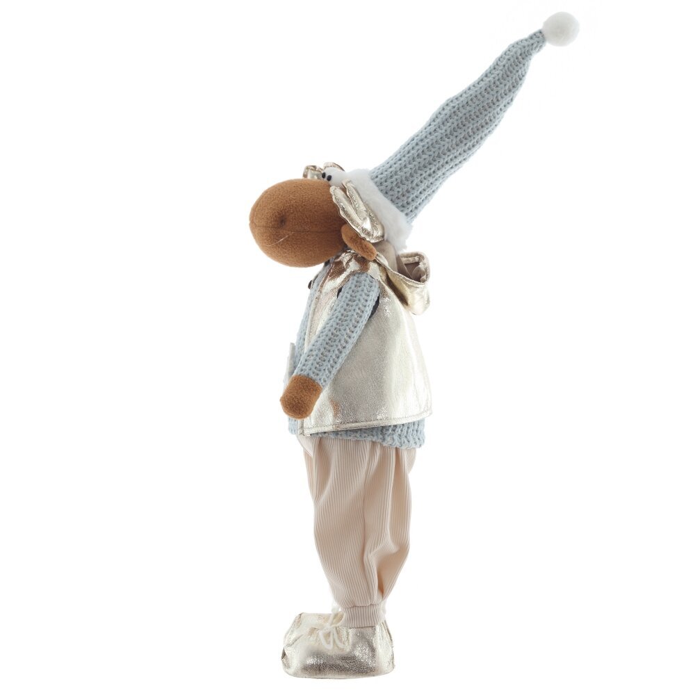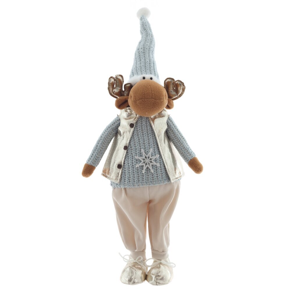 Очаровательная набивная игрушка в виде оленя станет ярким акцентом вашего новогоднего декора. Олень одет в уютную голубую вязаную одежду, которая придаёт образу тепло и домашний уют. Особое внимание привлекают золотые ботинки и блестящие золотые рога — они добавляют игрушке праздничного сияния и сказочного характера. Мягкий, приятный на ощупь материал делает её не только декоративной, но и безопасной для детей. Игрушка идеально подойдёт для украшения интерьера, праздничной фотозоны или в качестве оригинального подарка на Новый год.