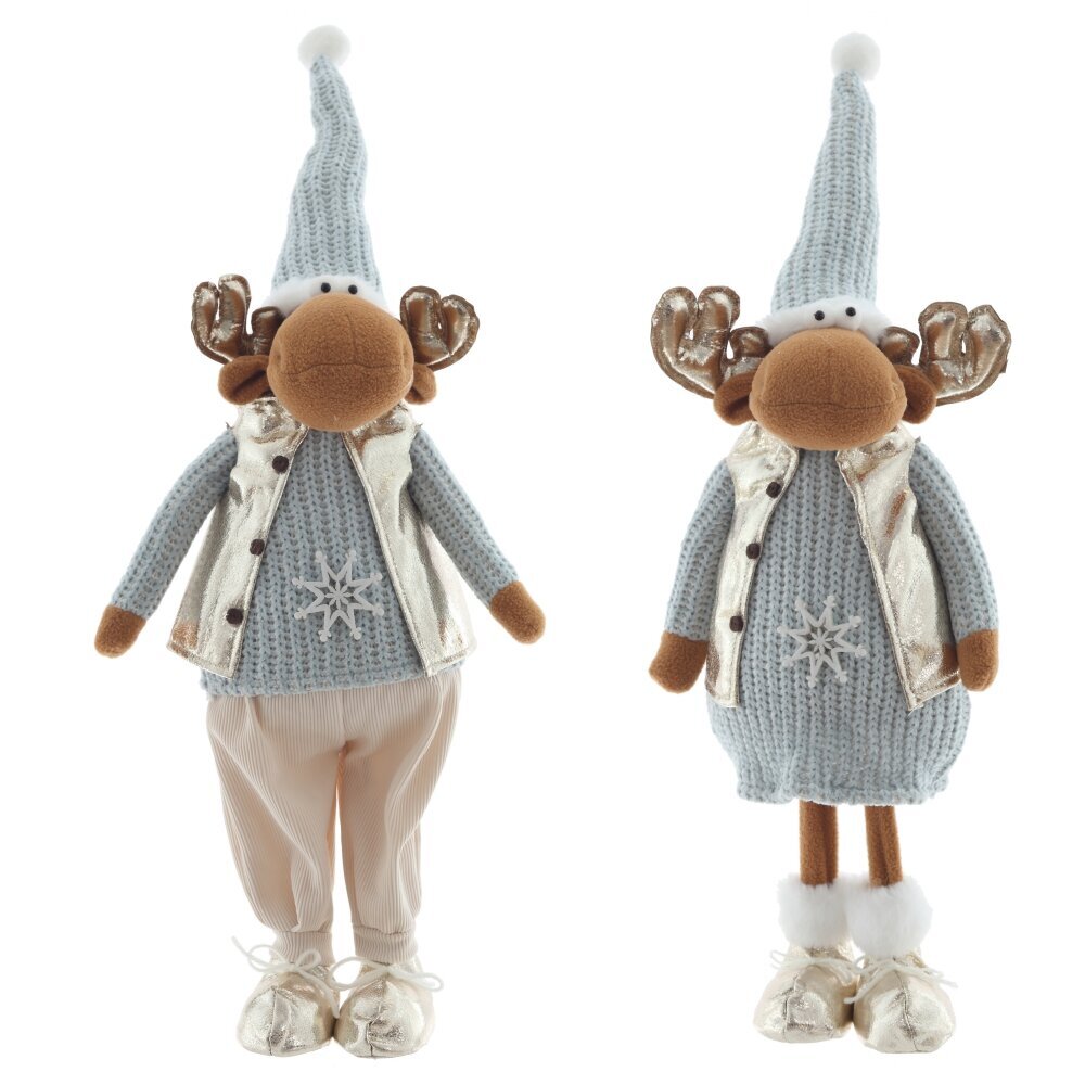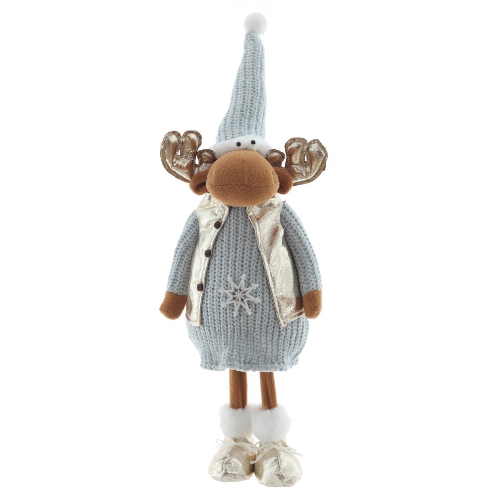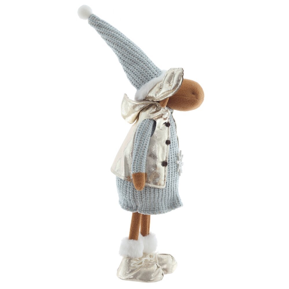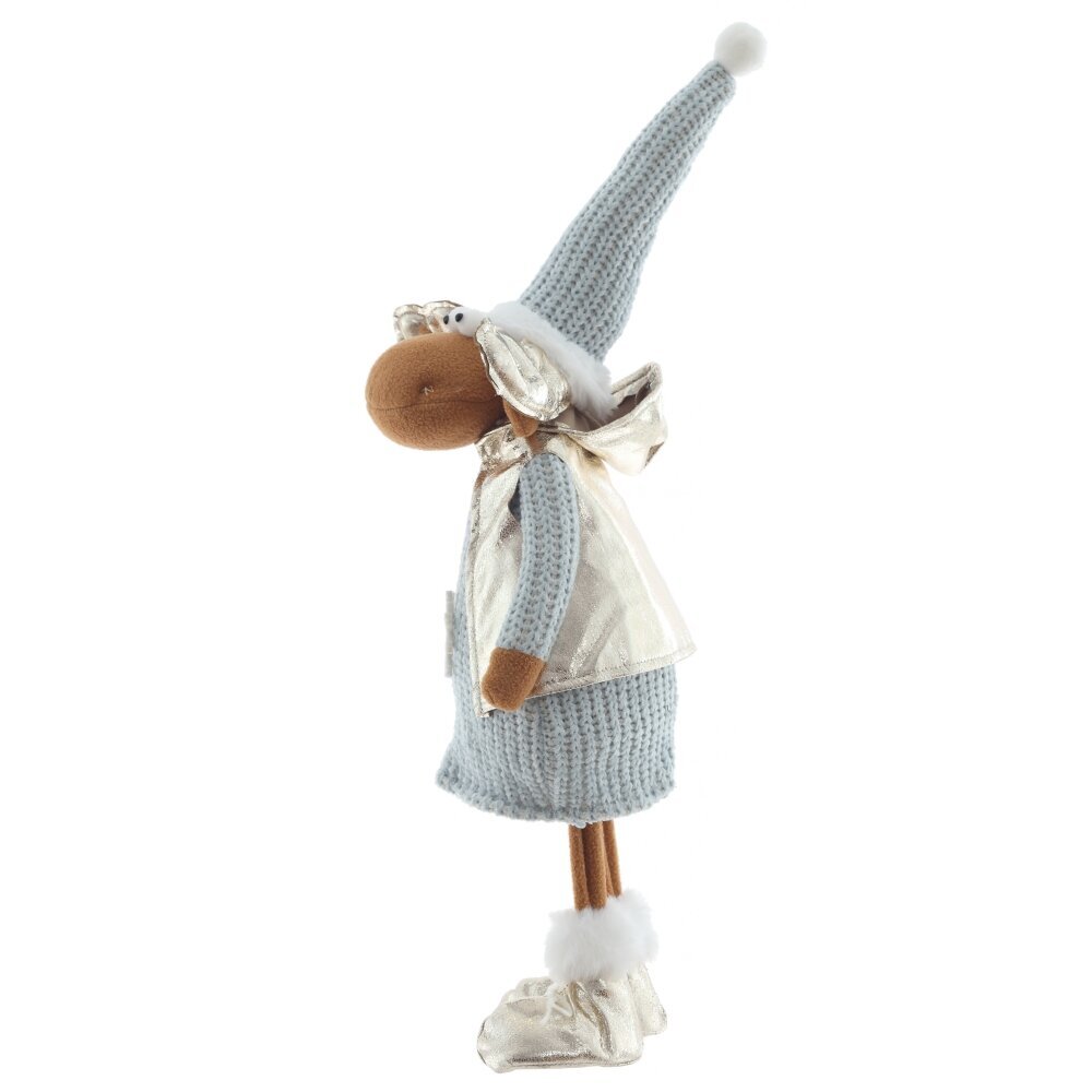 Очаровательная набивная игрушка в виде оленя станет ярким акцентом вашего новогоднего декора. Олень одет в уютную голубую вязаную одежду, которая придаёт образу тепло и домашний уют. Особое внимание привлекают золотые ботинки и блестящие золотые рога — они добавляют игрушке праздничного сияния и сказочного характера. Мягкий, приятный на ощупь материал делает её не только декоративной, но и безопасной для детей. Игрушка идеально подойдёт для украшения интерьера, праздничной фотозоны или в качестве оригинального подарка на Новый год.