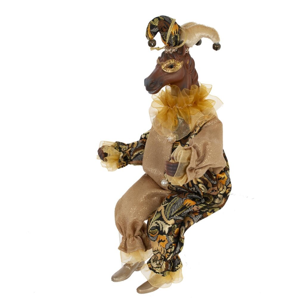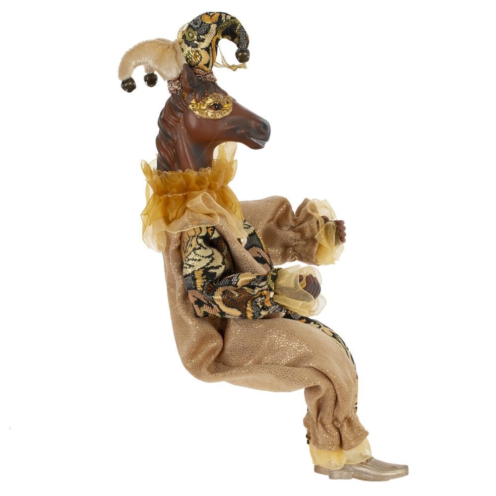 Набивная игрушка с подвесом "Лошадь" в костюме клоуна — изящный и необычный элемент новогоднего или интерьерного декора. Мягкая фигурка лошади выполнена с особым вниманием к деталям: роскошный костюм из блестящей ткани придаёт образу торжественность и сказочность. Игрушка создаёт атмосферу уюта и волшебства, отлично смотрится под ёлкой, на полке или в композиции с другими праздничными аксессуарами. Благодаря удобной петельке, изделие можно подвесить , например, на ёлку.Подойдёт как украшение, сувенир или оригинальный подарок.Стоит отметить, что голова игрушки выполнена из пластмассы, что делает изделие более легким, чем другие полимерные материалы.
