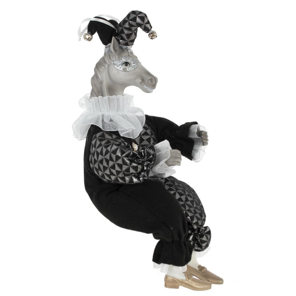 Набивная игрушка с подвесом "Лошадь" в костюме клоуна — изящный и необычный элемент новогоднего или интерьерного декора. Мягкая фигурка лошади выполнена с особым вниманием к деталям: роскошный костюм из блестящей ткани придаёт образу торжественность и сказочность. Игрушка создаёт атмосферу уюта и волшебства, отлично смотрится под ёлкой, на полке или в композиции с другими праздничными аксессуарами. Благодаря удобной петельке, изделие можно подвесить , например, на ёлку.Подойдёт как украшение, сувенир или оригинальный подарок.Стоит отметить, что голова игрушки выполнена из пластмассы, что делает изделие более легким, чем другие полимерные материалы.