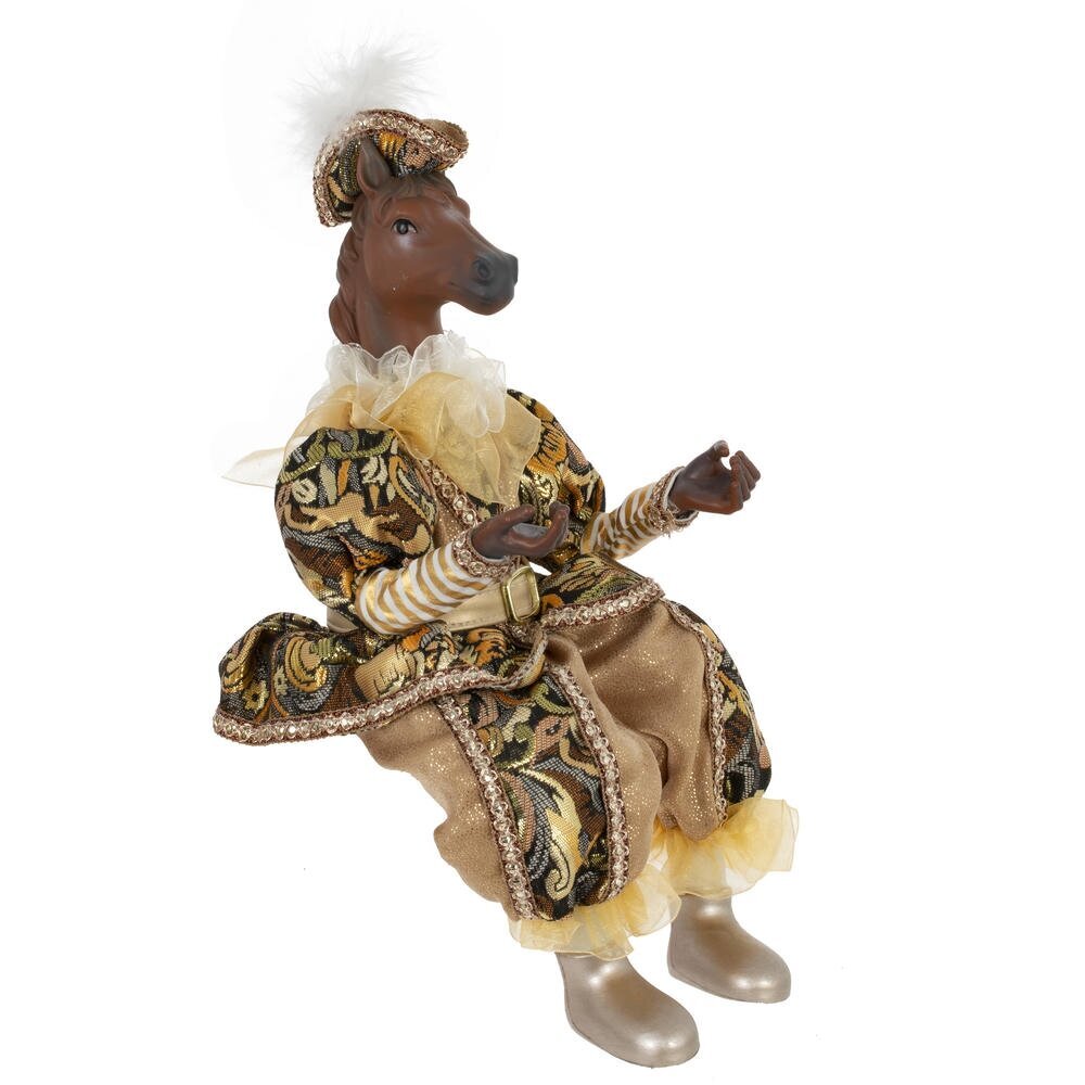 Рабивная игрушка с подвесом "Лошадь" в придворном костюме — изящный и необычный элемент новогоднего или интерьерного декора. Мягкая фигурка лошади выполнена с особым вниманием к деталям: роскошный костюм из блестящей ткани придаёт образу торжественность и сказочность. Игрушка создаёт атмосферу уюта и волшебства, отлично смотрится под ёлкой, на полке или в композиции с другими праздничными аксессуарами. Благодаря удобной петельке, изделие можно подвесить , например, на ёлку.Подойдёт как украшение, сувенир или оригинальный подарок.Стоит отметить, что голова игрушки выполнена из пластмассы, что делает изделие более легким, чем другие полимерные материалы.