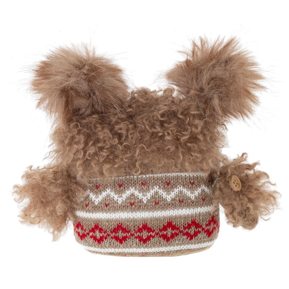 Позвольте себе окунуться в атмосферу тепла и уюта с очаровательной мягкой игрушкой-совой! Эта уютная сова, словно сошедшая с праздничной открытки, станет прекрасным подарком для себя или близких! Ее пушистое тело, выполненное из комбинированных материалов - меха и вязанного трикотажа, создает неповторимый контраст текстур и ощущений. Мягкий мех придает сове уют, а вязаный трикотаж с новогодним орнаментом добавляет праздничного настроения. Играйте с очаровательной совой, обнимайте ее, и пусть она дарит вам чувство спокойствия и уюта и атмосферу тепла и радости в любой комнате.
