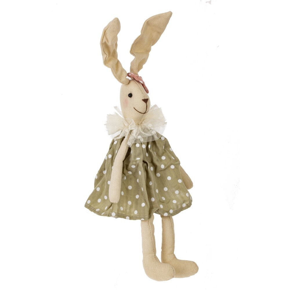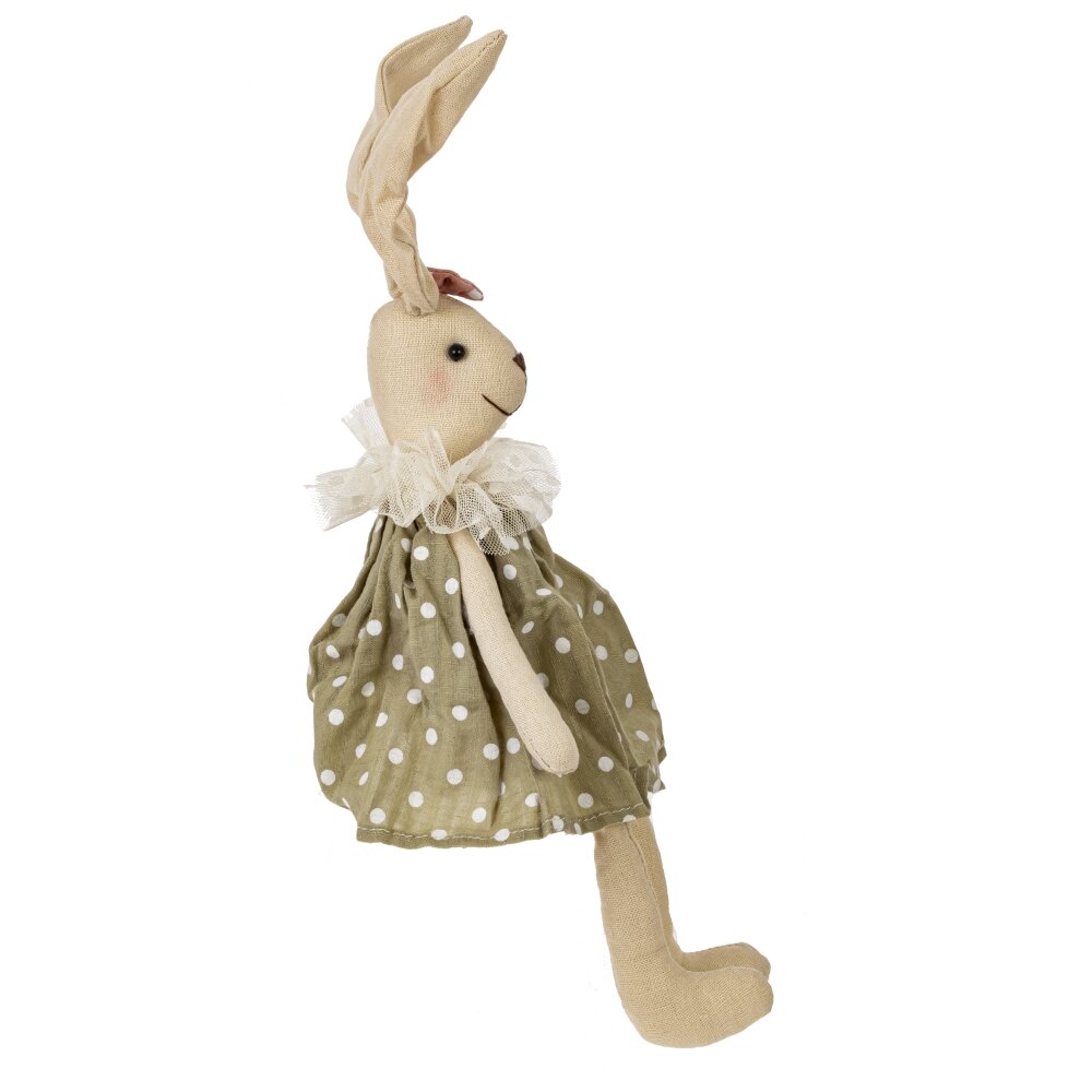Очаровательный пасхальный зайчик – мягкая набивная игрушка, которая станет стильным украшением праздника и милым подарком для детей и взрослых. Зайка выполнена в нежных бежевых тонах, одета в платье с горошком и воздушным воротничком из фатина. Длинные ушки и бантик придают игрушке особое очарование. Мягкие ножки позволяют усадить зайчика на полку, подоконник или композицию с пасхальными яйцами. Игрушка приятна на ощупь, аккуратно сшита из текстиля, безопасна для детских рук. Идеально подходит для декора дома, фотосессий, оформления пасхальной корзины и создания уютной весенней атмосферы.